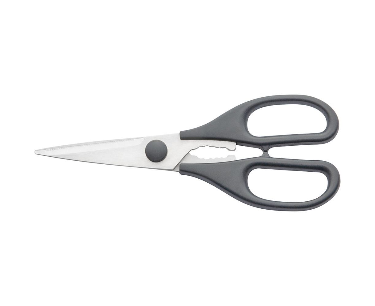 Универсальные ножницы будут полезны не только на кухне в качестве разделки любых мясных продуктов, шинковки зелени, но могут стать незаменимым помощником в мастерской при работе с тканями, бумагами и т.д. Ножницы оснащены специальным скребком для чистки рыбьей чешуи, орехоколом и открывалкой для крышек.