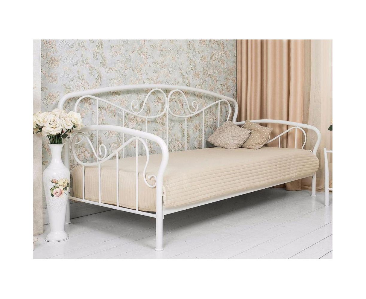 Изящная кровать станет эстетичным и функциональным элементом спальни. Модель оснащена высокой спинкой с красивым узором из литого металла. Рассчитана для комфортного размещения одного человека. Кровать имеет прочный и надёжный металлический каркас, способный выдерживать высокие нагрузки без риска деформации и провисания. Модель отлично подойдет к интерьеру, выдержанному в современном стиле, кантри или Прованс.