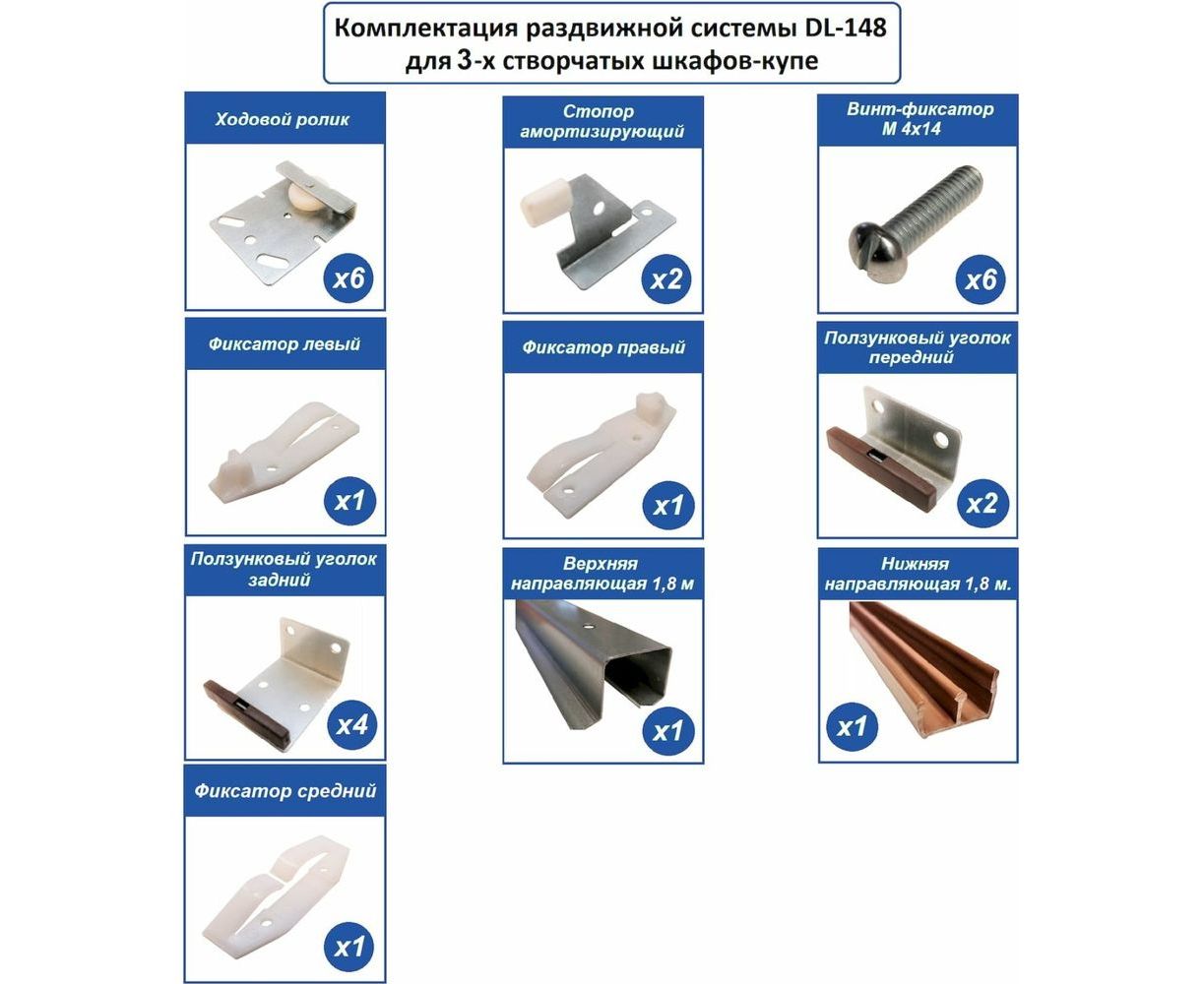 Раздвижная система для трехстворчатых шкафов-купе Левша DL148 У8-8313