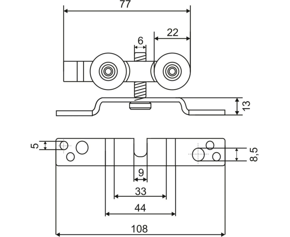 Комплект из двух роликов с подшипниками и нейлоновыми колесами обеспечивают мягкий и бесшумный ход.