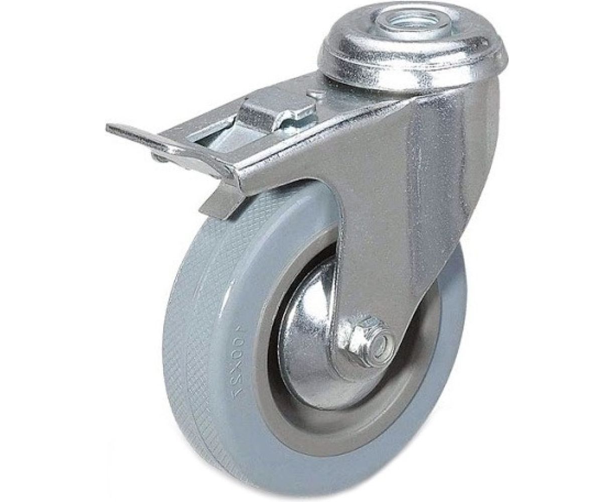 Аппаратное поворотное колесо Tech-Krep п/п обод, серая рез, подшип. скольжения, под болт М12, D100, с торм. - пакет 148512