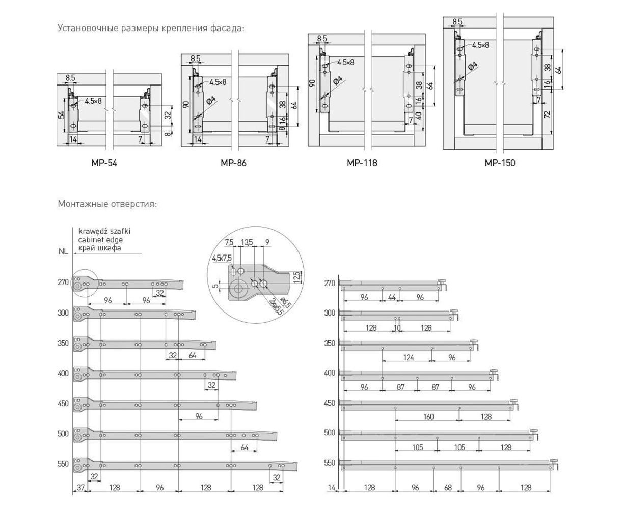Внимание! Шурупы для монтажа приобретаются отдельно. Возможно усовершенствование системы выдвижения посредством установки доводчика, который покупается дополнительно.