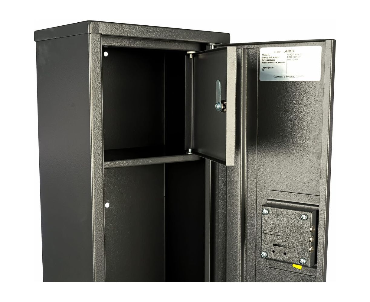 Сейф AIKO Чирок S11299103841 станет прекрасным помощником для защиты огнестрельного оружия от несанкционированного доступа. Дверь запирается на два ключевых замка. Внутри сейфа расположен ложемент для ружья и патронный отсек, который отдельно запирается на ключ. Изделие соответствует требованиям ст.59 Постановления правительства РФ № 814 от 21 июля 1998 года «О мерах по регулированию гражданского и служебного оружия и патронов к нему на территории РФ».
