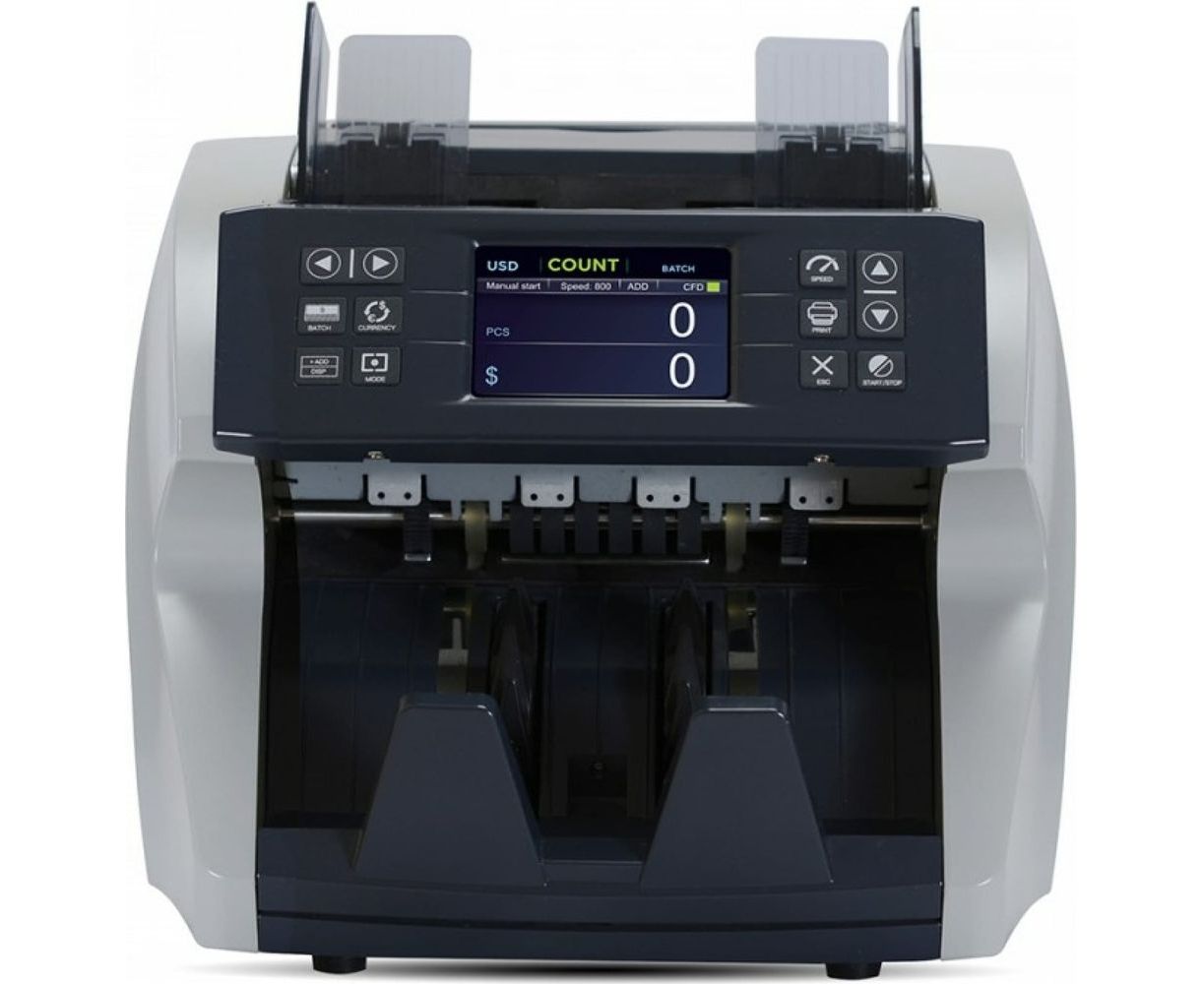 Счетчик банкнот MERTECH C-100 CIS MG 5034 подсчитывает купюры и проверяет их на подлинность. Для данной модели доступны 2 дополнительные детекции (магнитная; СIS).