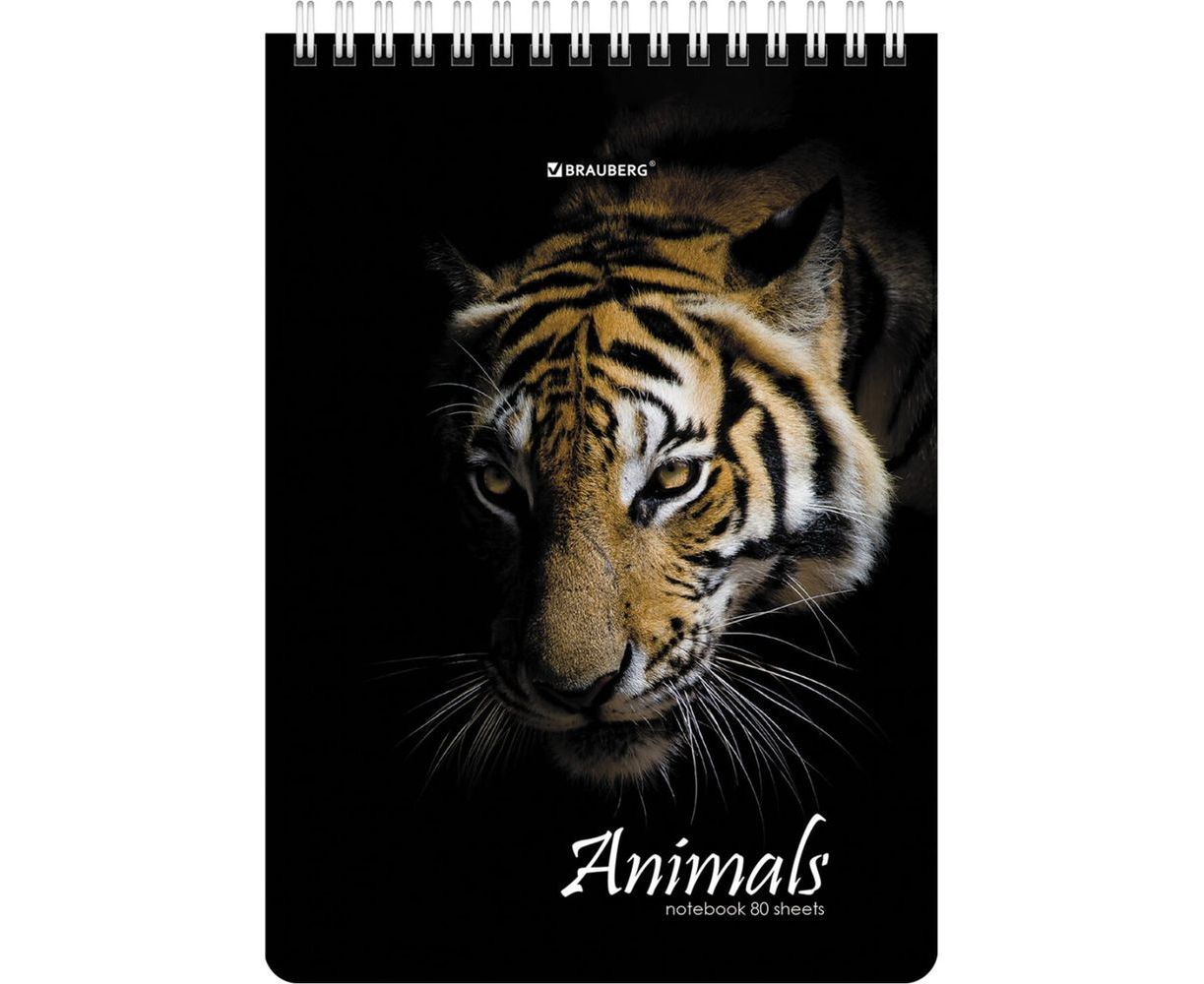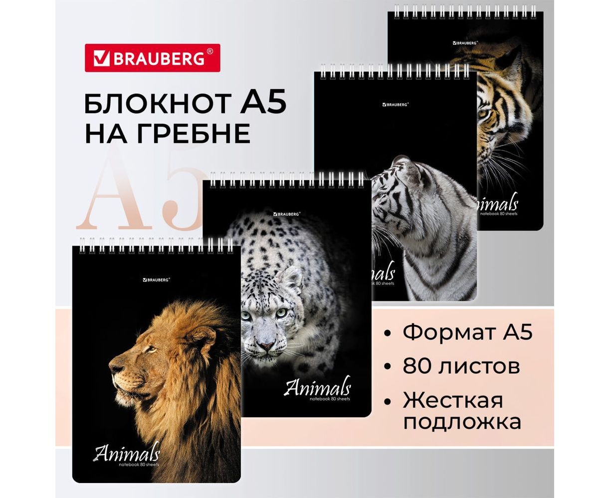 Блокнот BRAUBERG А5, 146x206 мм, 80 л., гребень, картон, жесткая подложка, клетка, Хищники 114385