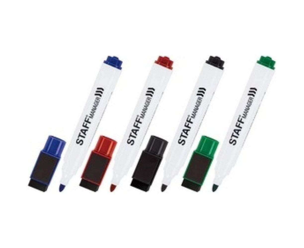 Маркеры для белой доски на магните со стирателем STAFF НАБОР Manager 4 цвета, 3 мм 152006 предназначены для досок с магнитной поверхностью.