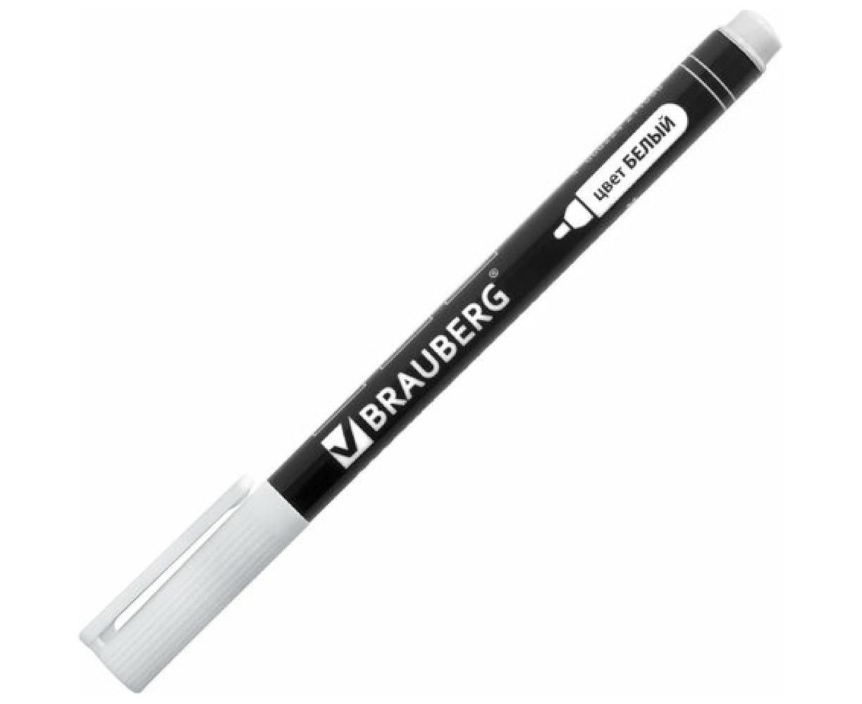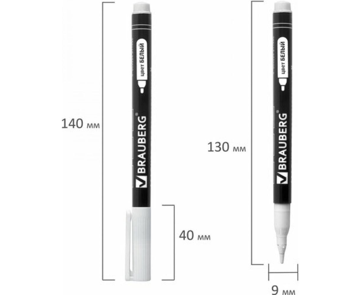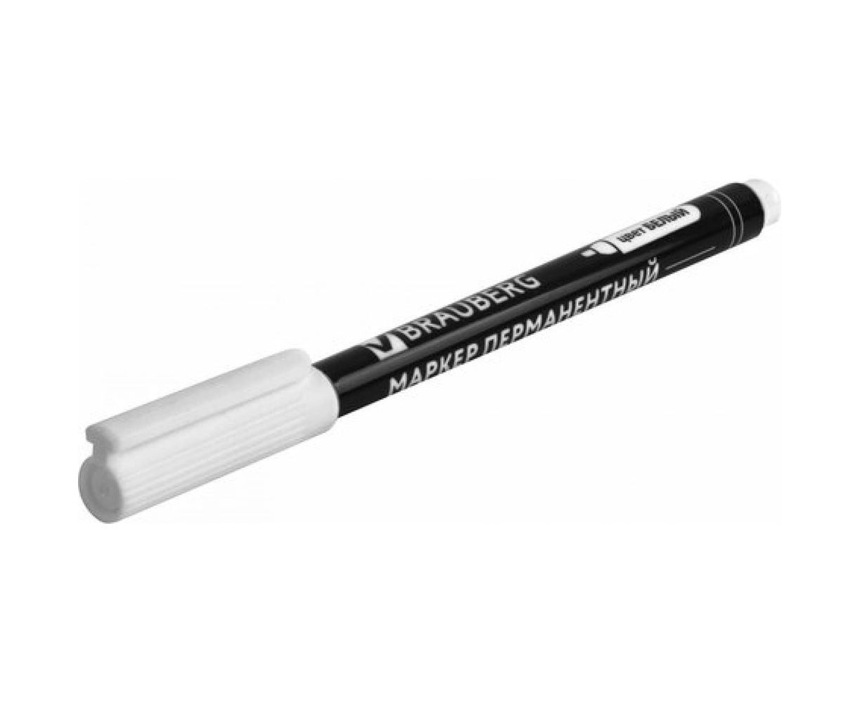 Маркер 12 шт в упаковке BRAUBERG перманентный "W2" БЕЛЫЙ круглый наконечник 2 мм 151505