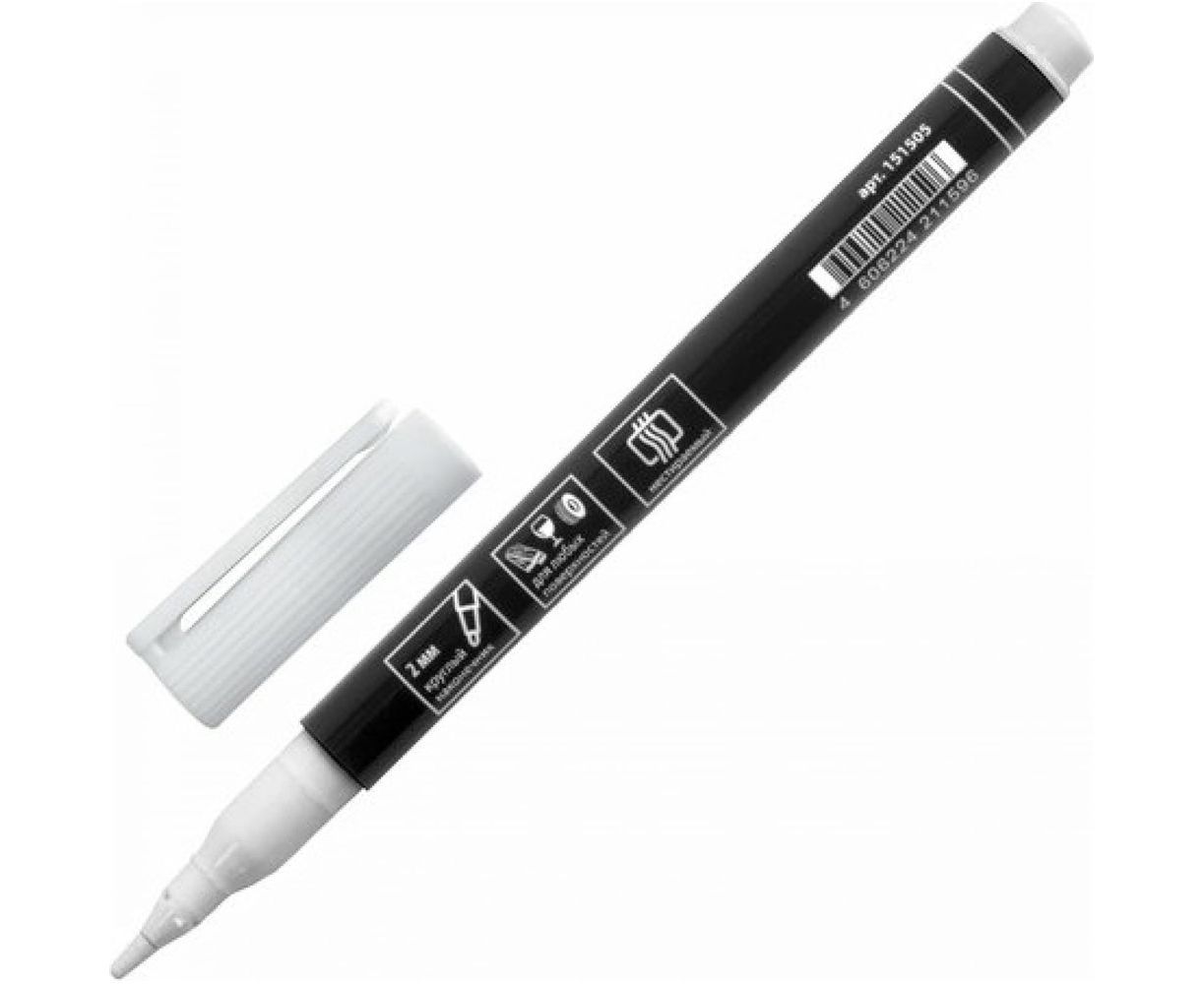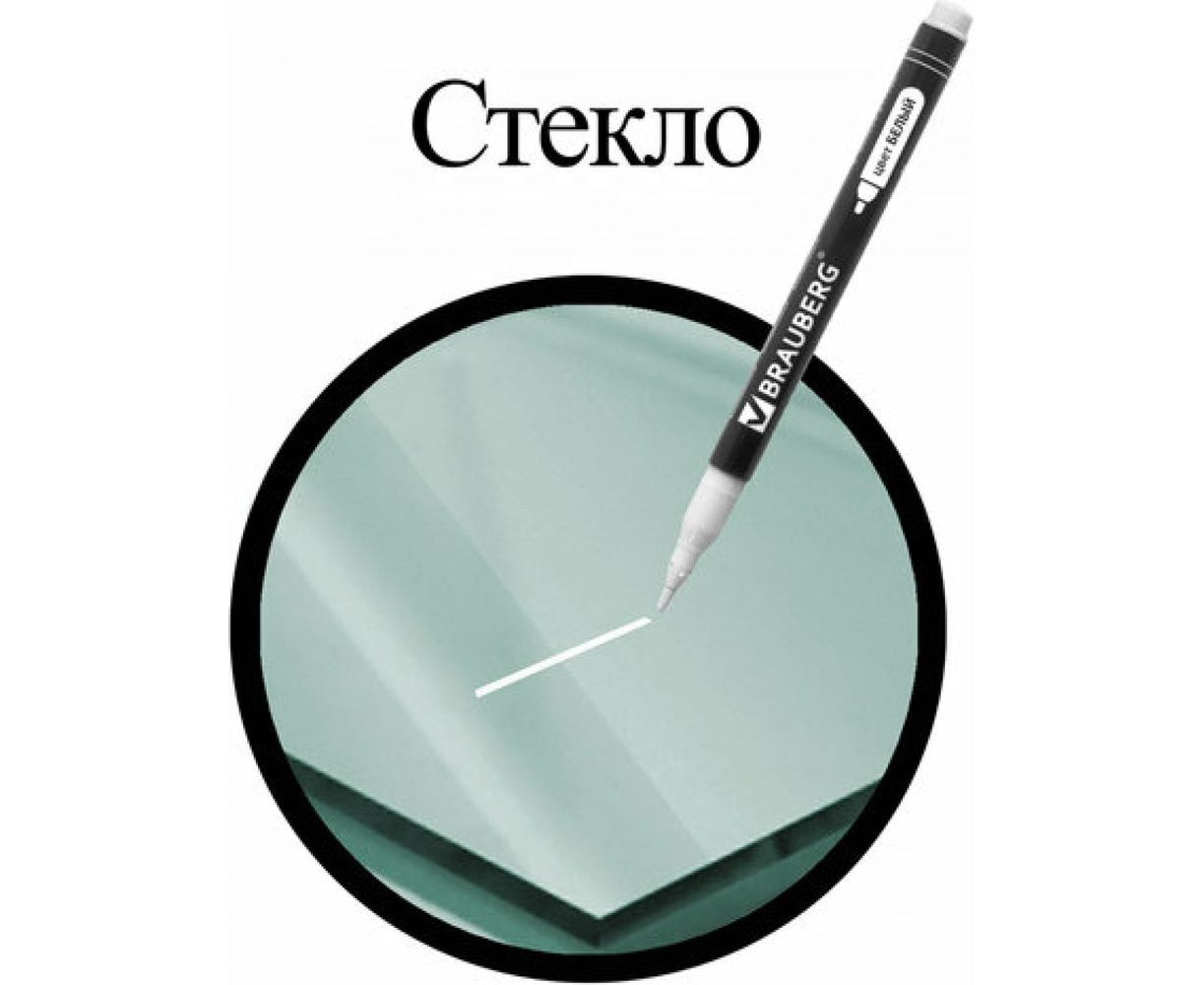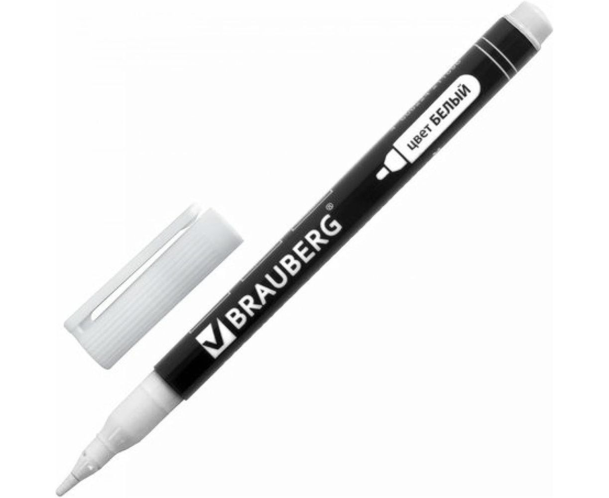 Маркер 12 шт в упаковке BRAUBERG перманентный "W2" БЕЛЫЙ круглый наконечник 2 мм 151505