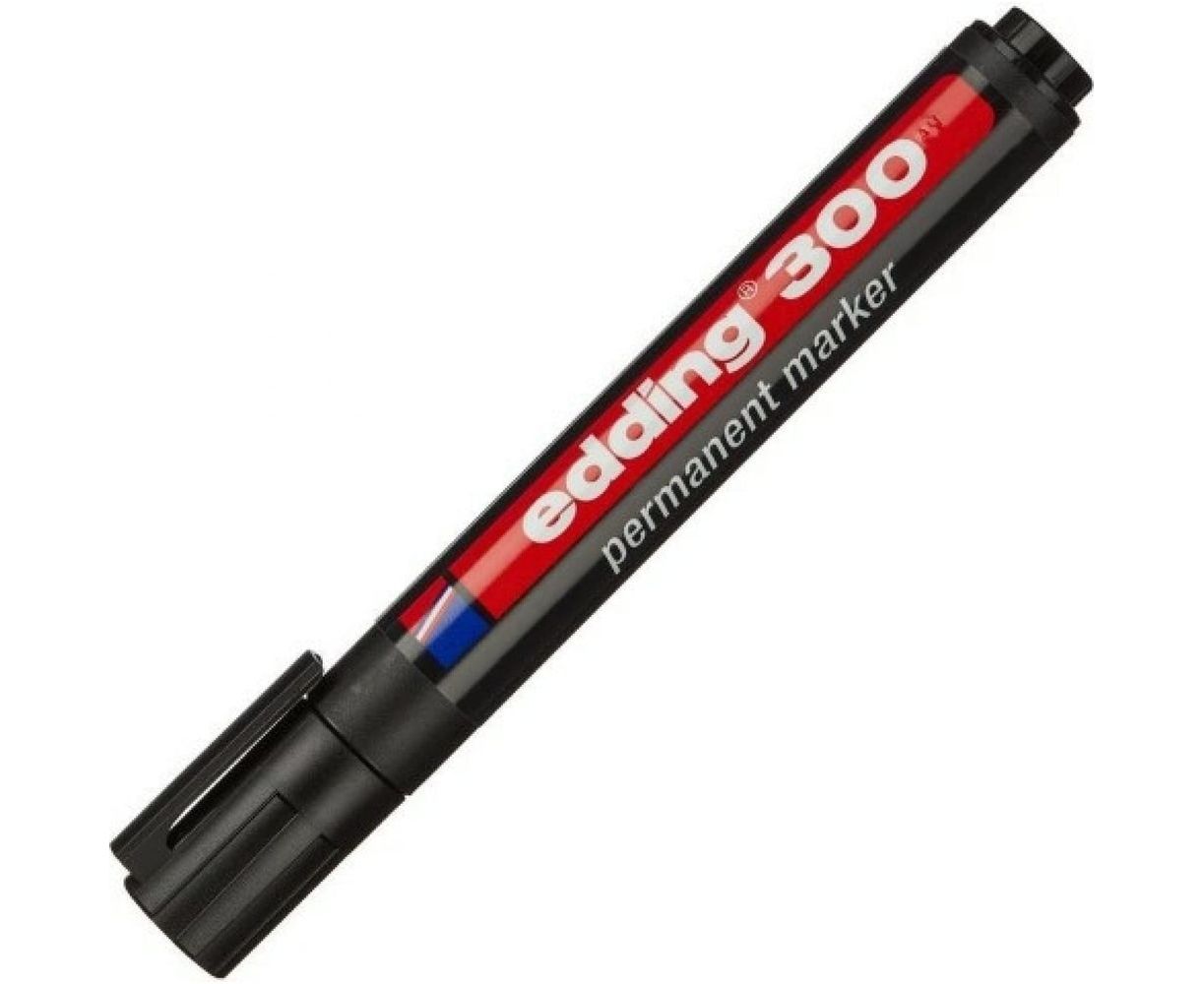 Перманентный маркер Edding черный, 1.5-3 мм, круглый наконечник, блистер E-300#1-B#1 предназначен для письма на различных поверхностях.