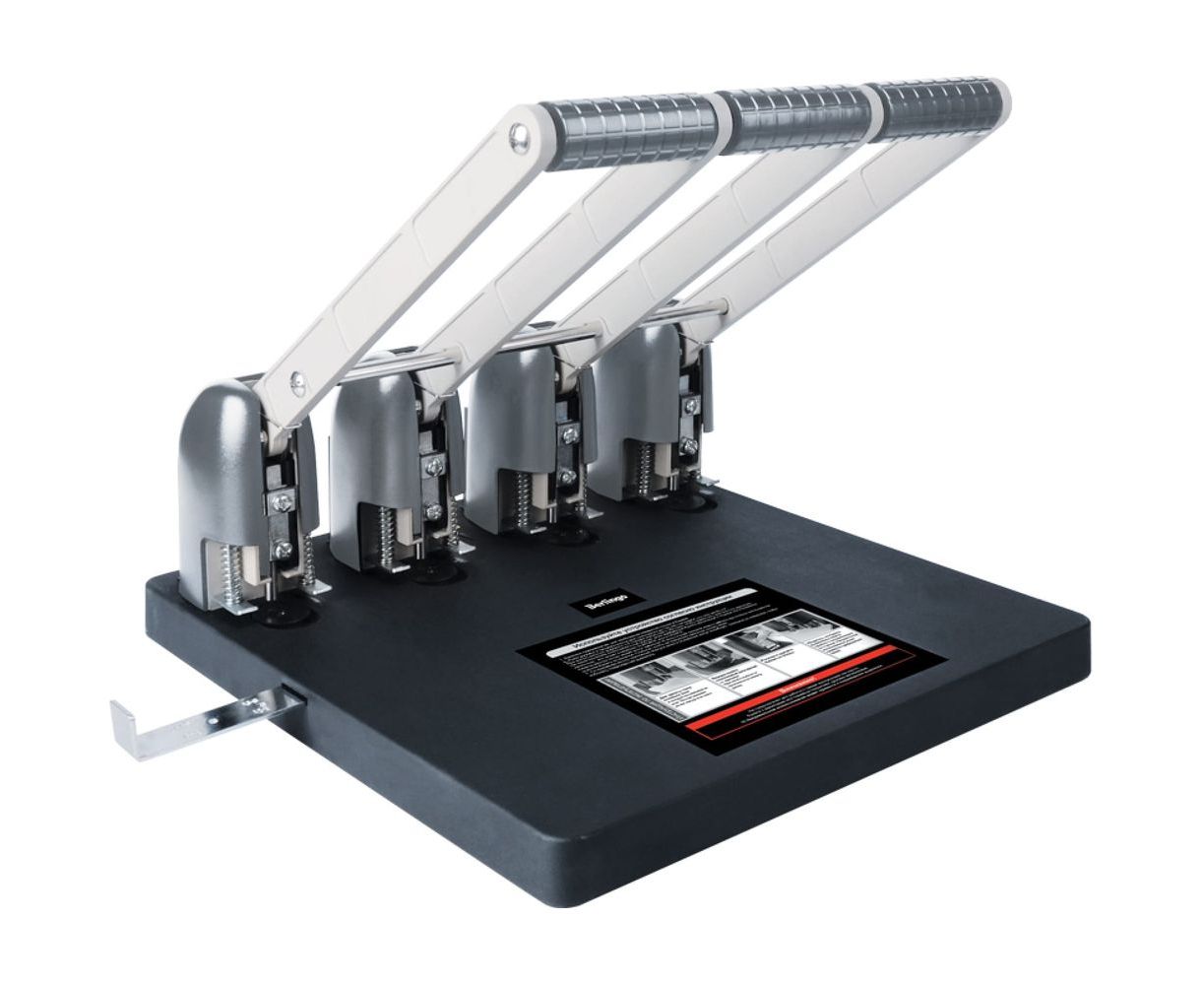 Мощный дырокол BERLINGO Heavy Duty на четыре отверстия 150 листов, черный, с линейкой DDm_15041 предназначен для перфорации бумаги.