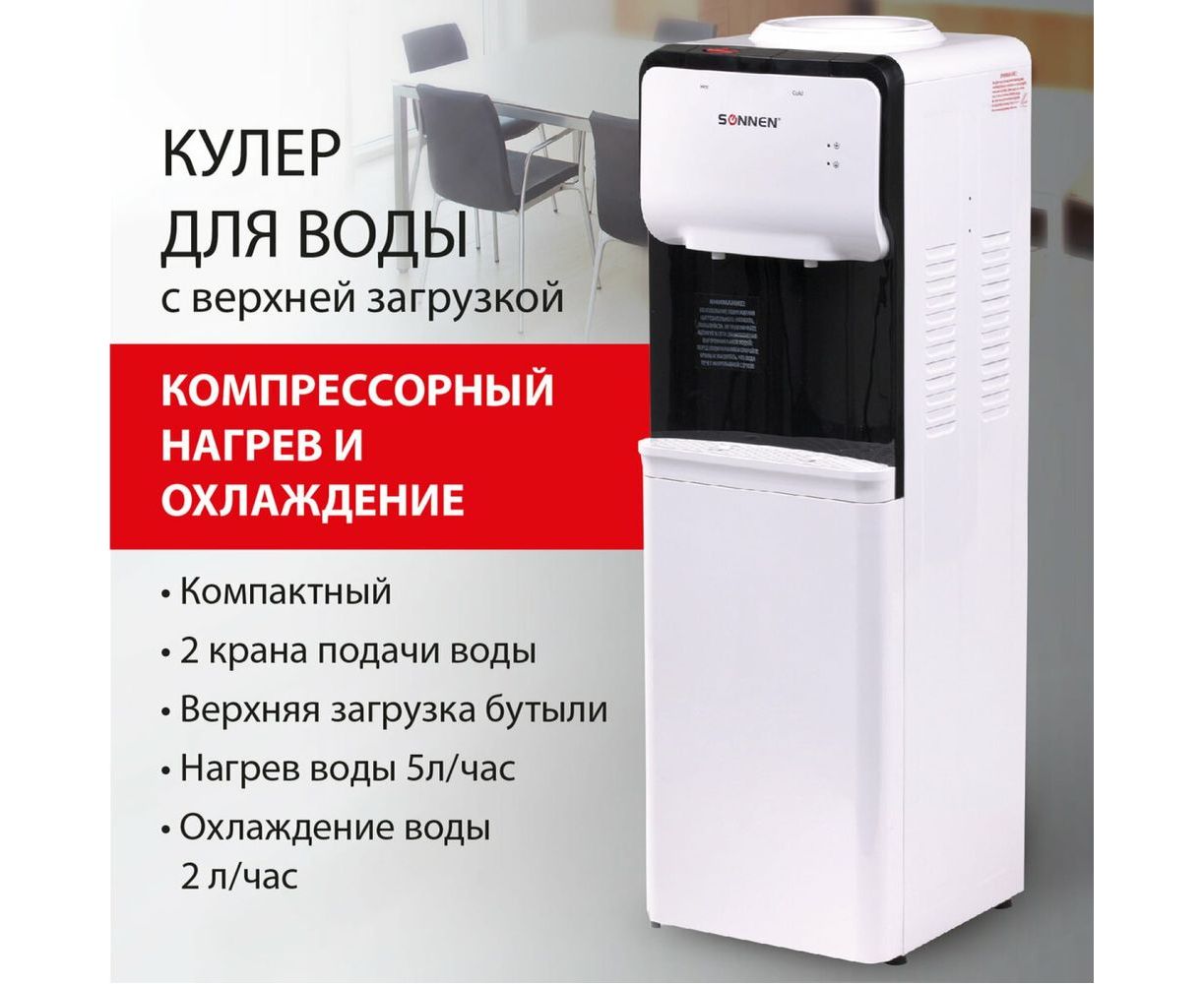 Напольный кулер для воды SONNEN Fsc-02s нагрев/охлаждение компрессорное, 2 крана, серый 455415 обеспечит питьевой холодной и горячей водой сотрудников и посетителей предприятий, офисов и других организаций.