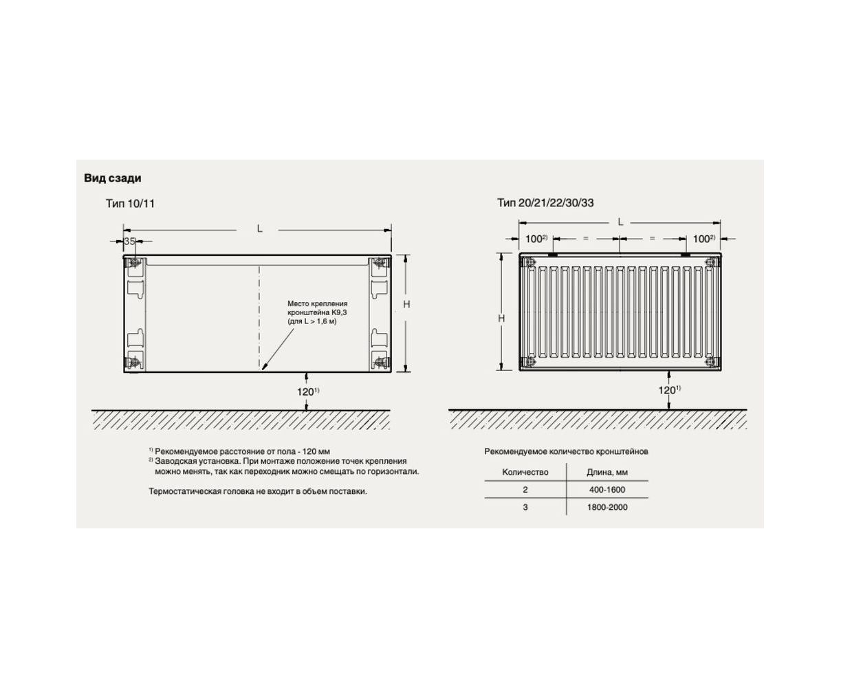 Конструктивно радиатор включает в себя две тепловые панели с двумя дополнительными теплоотдающими поверхностями, панели изготовлены из двух стальных штампованных листов толщиной 1.2 мм, соединенных между собой сваркой.