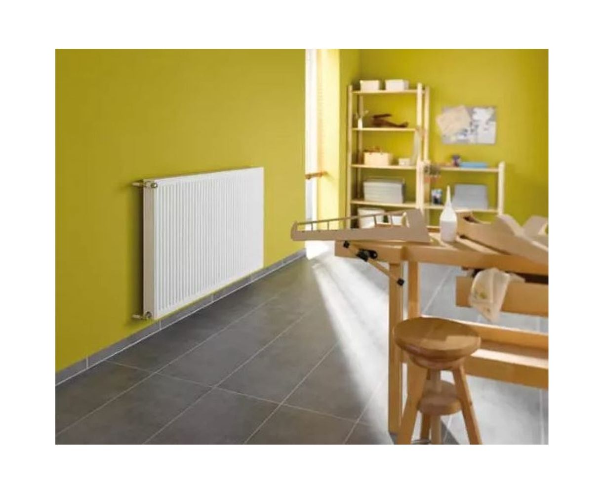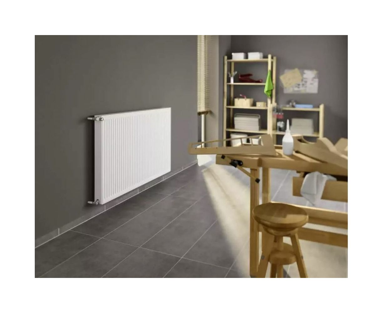 Стальной панельный радиатор Kermi Profil-K FK O 22/500/800 боковое подключение белый RG008V5K7HCUVE имеет две греющие панели по которой циркулирует теплоноситель и два конвекционных элемента, которые расположены между панелей для улучшения свойств теплоотдачи батареи.