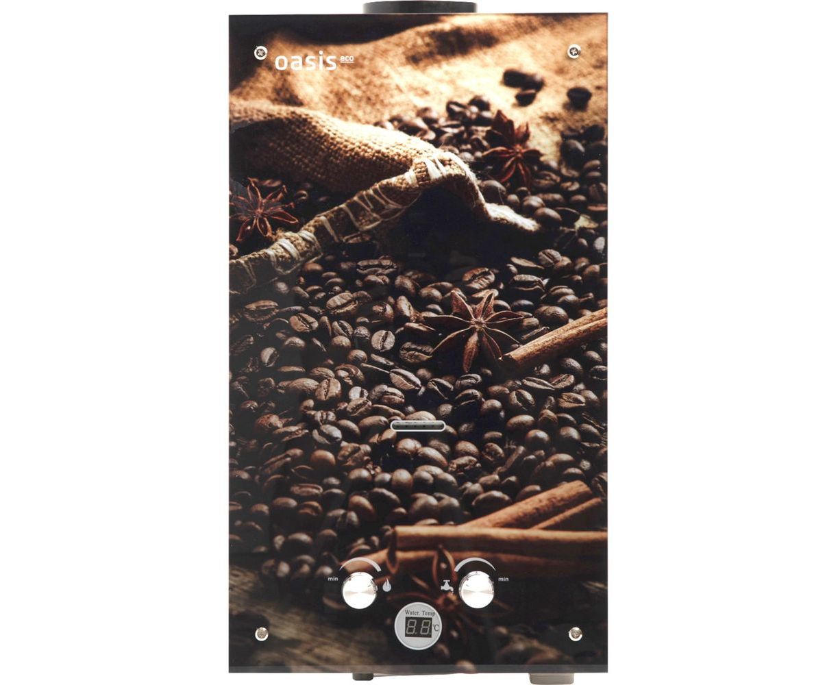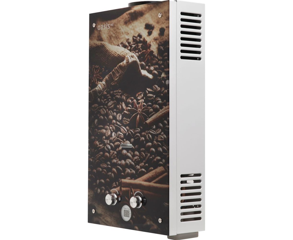 Газовый проточный водонагреватель Oasis Eco K-20 предназначен для горячего водоснабжения помещений, оборудованных дымоходом. Вода моментально нагревается в температурном пределе до 60 °C от сгорающего газа. Розжиг колонки происходит от батареек, автоматически при открытии крана горячей воды. Водонагреватель оснащён современным LCD дисплеем с индикатором температуры воды. Оригинальный дизайн панели в каштаново-бежевых тонах содержит изображения кофейных зёрен, коричных палочек и звёздочек аниса.