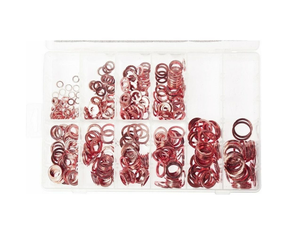 Набор медных шайб, 500шт JTC 20191 используется для быстрого и качественного уплотнения соединений в различных системах автомобиля (ходовая часть, форсунки и т.д.). В комплекте предусмотрены 10 типоразмеров шайб (10 видов по 50 шт.), что позволяет применять их к большинству существующих марок автомобилей. Специальная таблица на крышке бокса позволяет быстро подобрать нужную по размеру шайбу. Для установки данных изделий от пользователя не требуется каких-либо специальных знаний или умений. Вес - 0.995 кг.