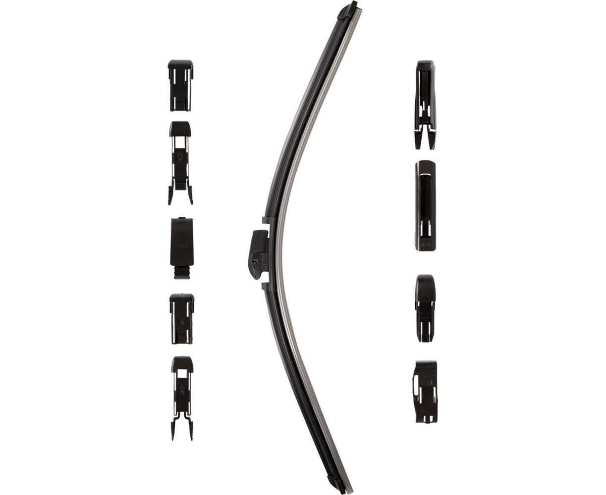 Бескаркасная щетка стеклоочистителя KRAFT 550mm KT 830029 выполненная по современной технологии из высококачественных материалов, предназначена для установки на переднее стекло автомобиля. Направляющая шина, расположенная внутри чистящего полотна, равномерно распределяет прижимное усилие по всей длине, точно повторяя рельеф щетки, что обеспечивает наиболее полное очищение стекла за один проход. Отличается высоким качеством исполнения и оптимально подходит для замены оригинальных щеток, установленных на конвейере. Обеспечивает качественную очистку стекла в любую погоду. Изделие оснащено 10 адаптерами, которые превосходно подходят для наиболее распространенных типов креплений. Простой и быстрый монтаж.