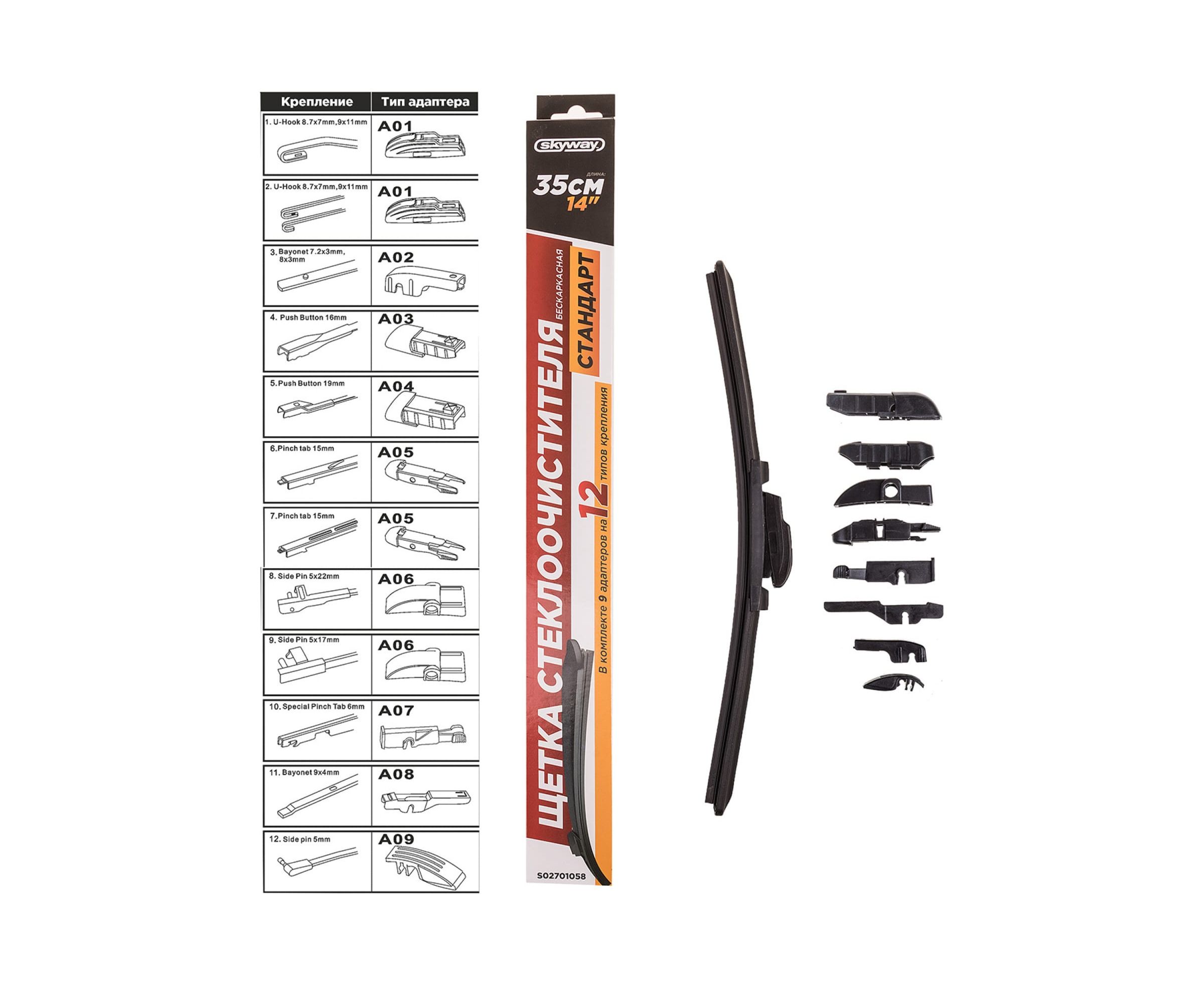 Бескаркасная щетка стеклоочистителя SKYWAY стандарт 9 адаптеров S02701058
