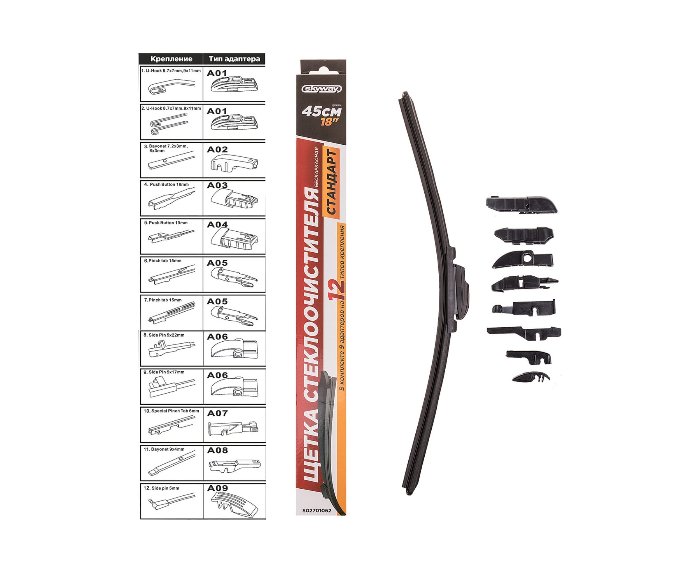 Бескаркасная щетка стеклоочистителя SKYWAY стандарт 9 адаптеров S02701062