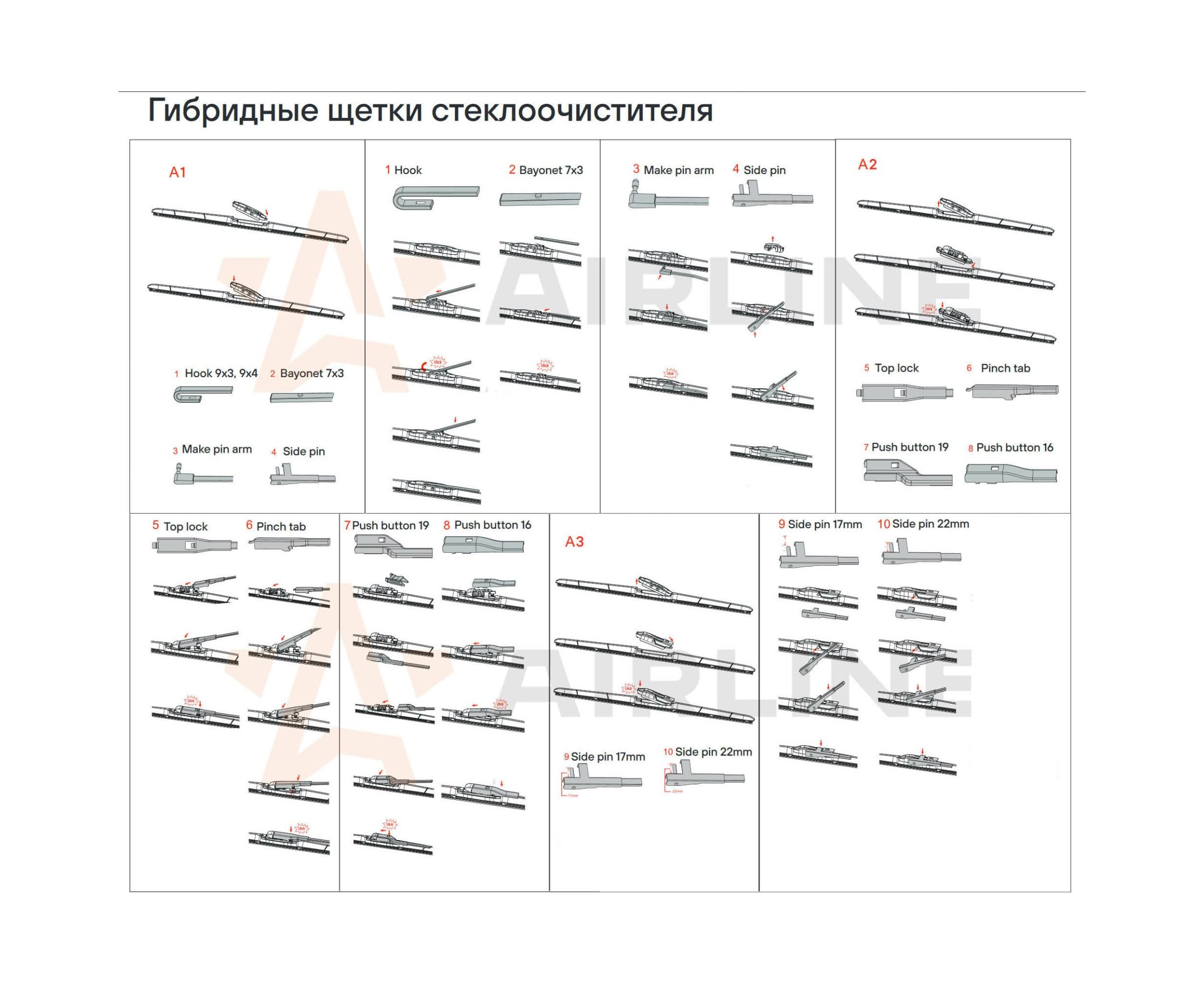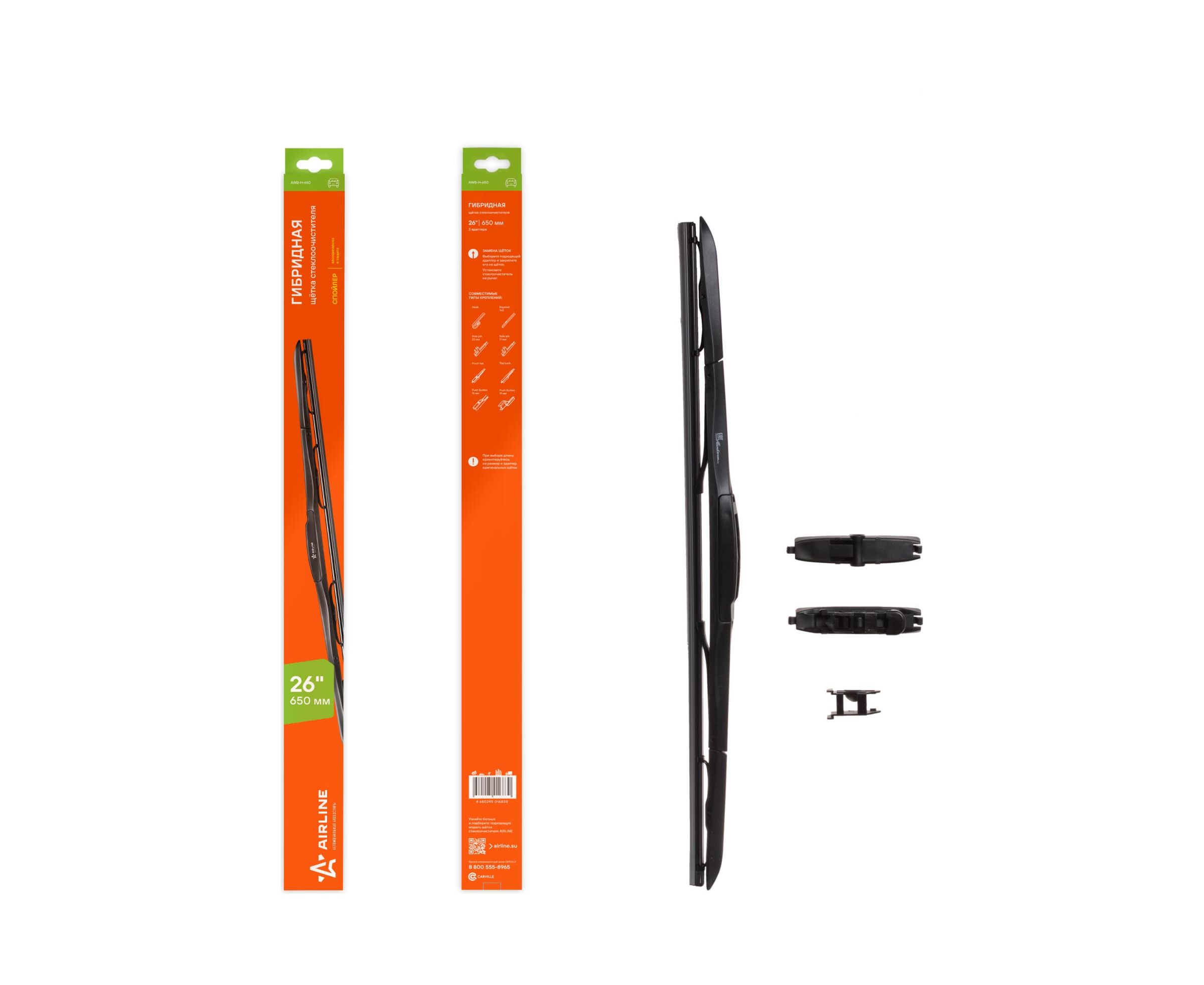 Гибридная щетка стеклоочистителя Airline AWB-H-650 (650 мм/26, 8 адаптеров)