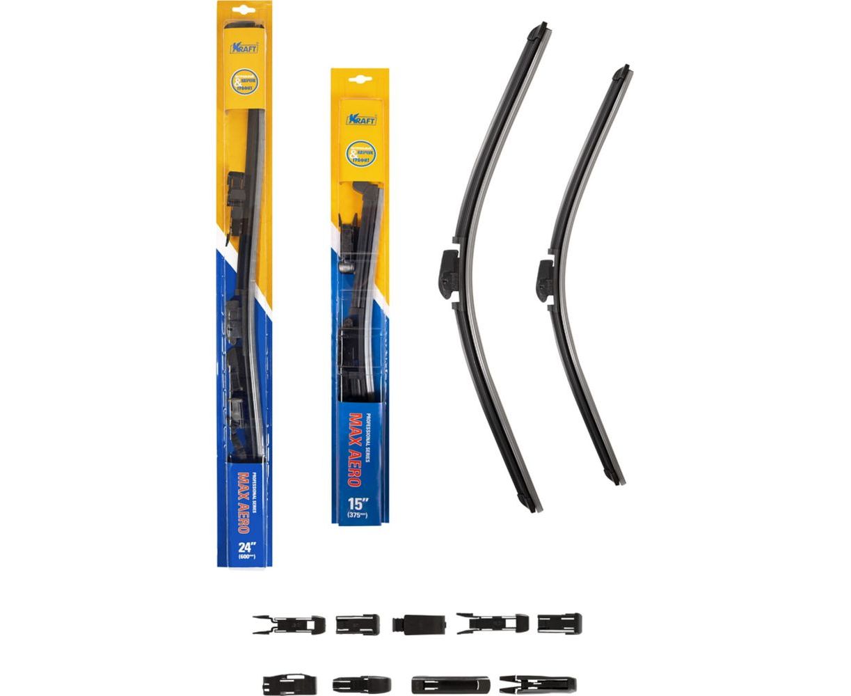 Комплект бескаркасных щеток стеклоочистителя 600/380 мм, 10 адаптеров KRAFT 830896