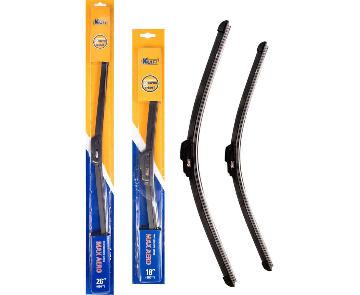 Комплект бескаркасных щеток стеклоочистителя KRAFT 650/450 мм, 1 адаптер KT 830864
