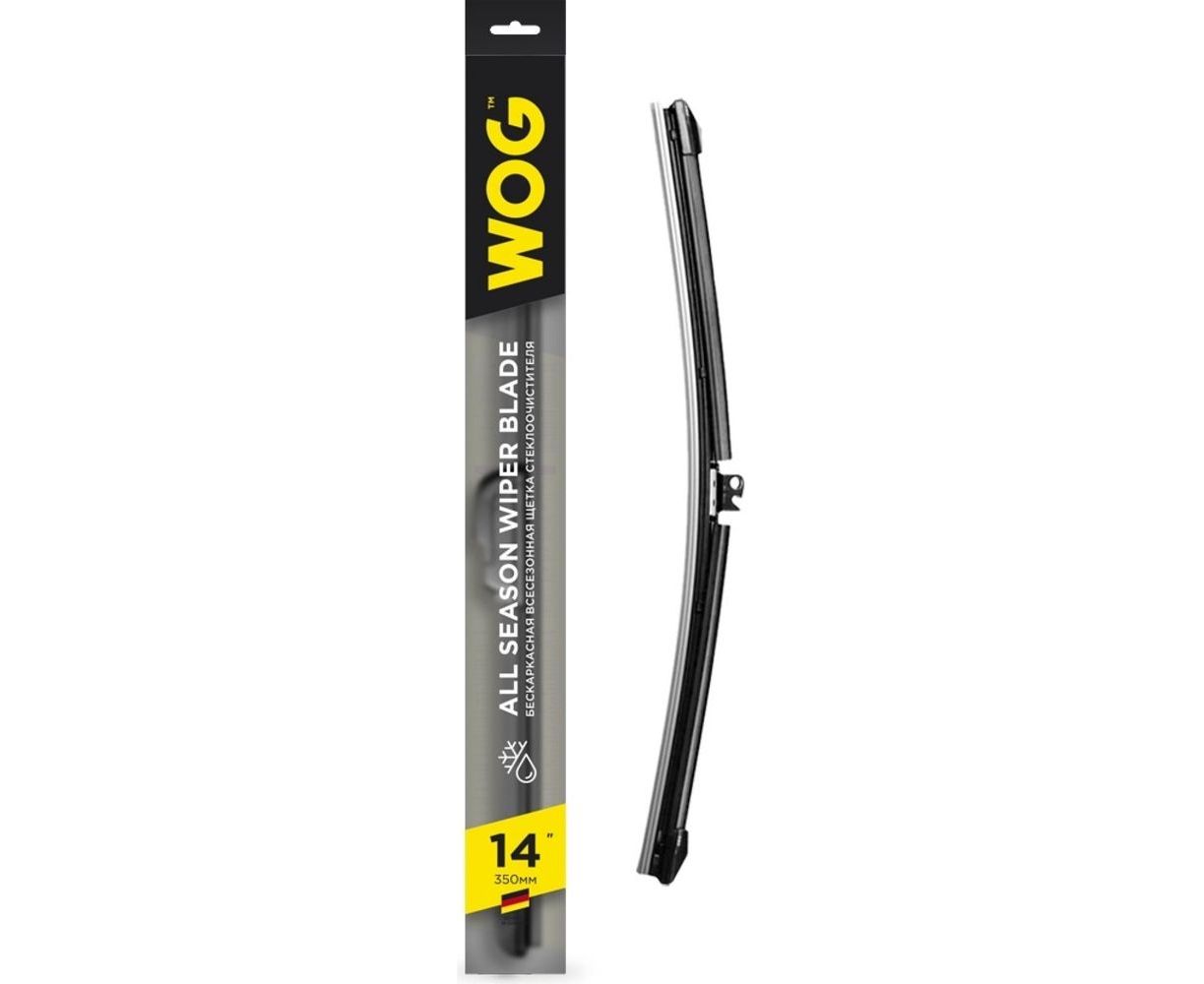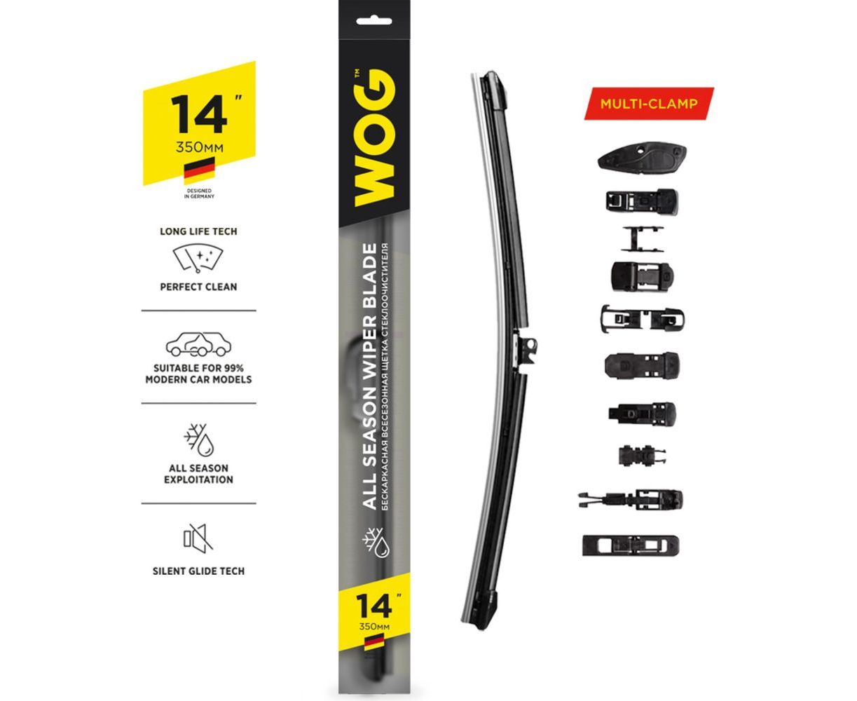 Щетка стеклоочистителя всесезонная бескаркасная бесшумная 14"/350 мм с адаптерами WOG WGC1401