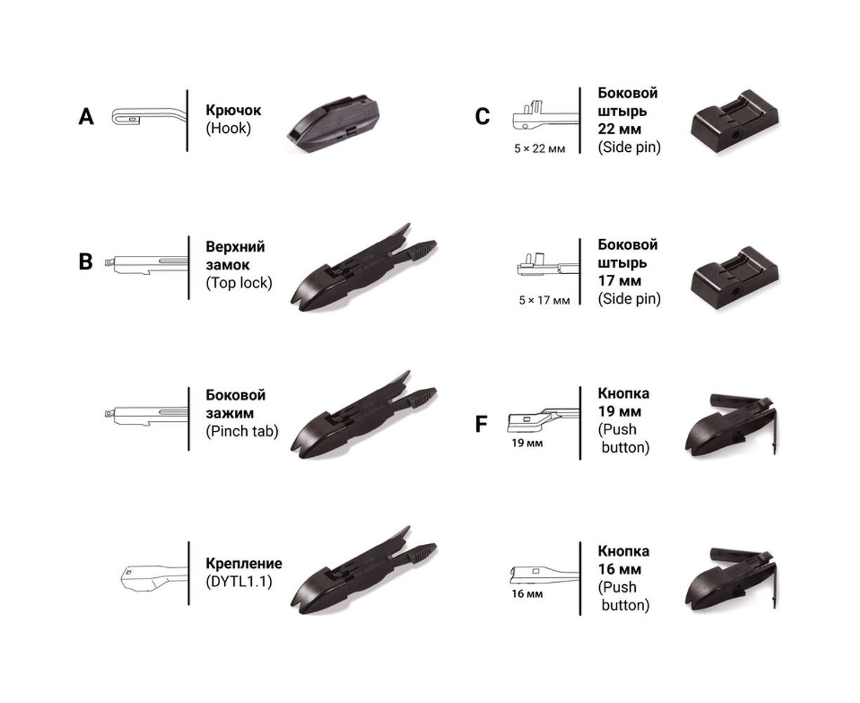 Hook/Top lock/Side pin 22mm/Push button 19mm