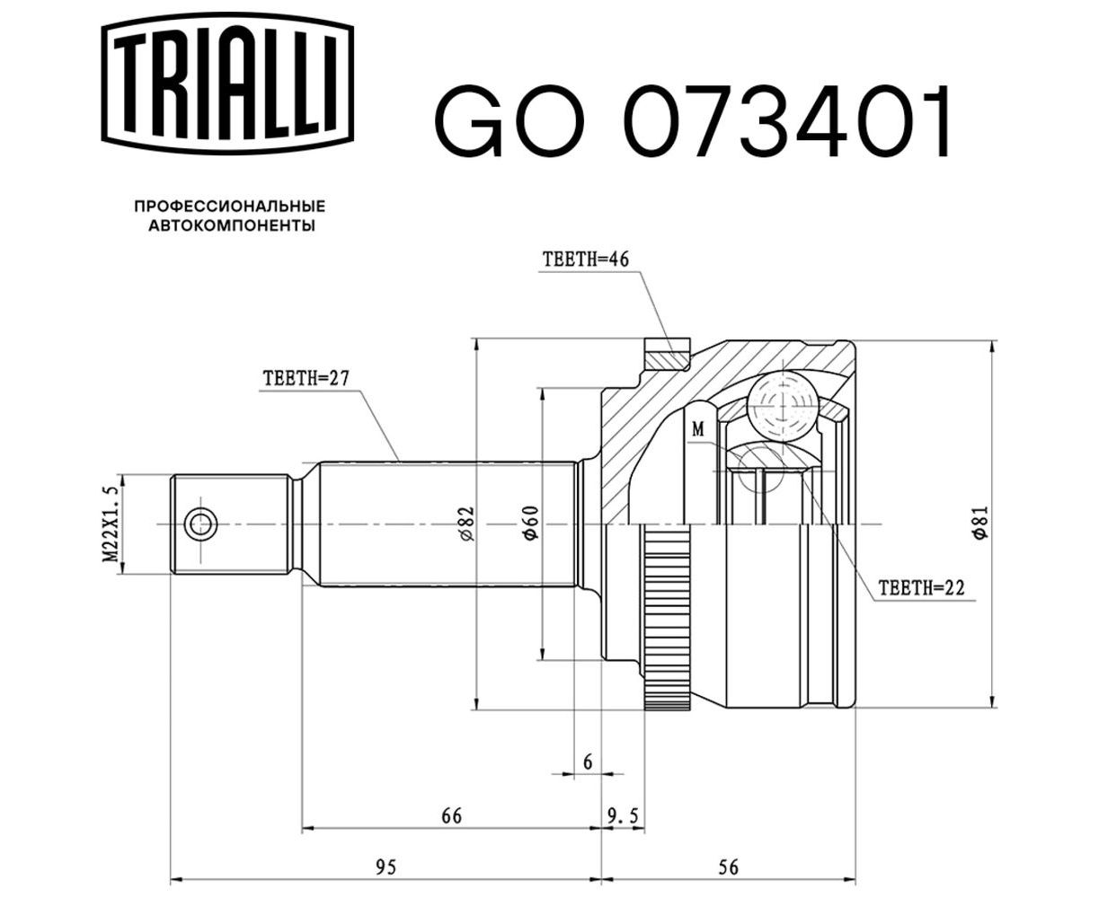ШРУС наружный для автомобилей Kia Ceed 1.4i/1.6i MT ABS TRIALLI GO 073401