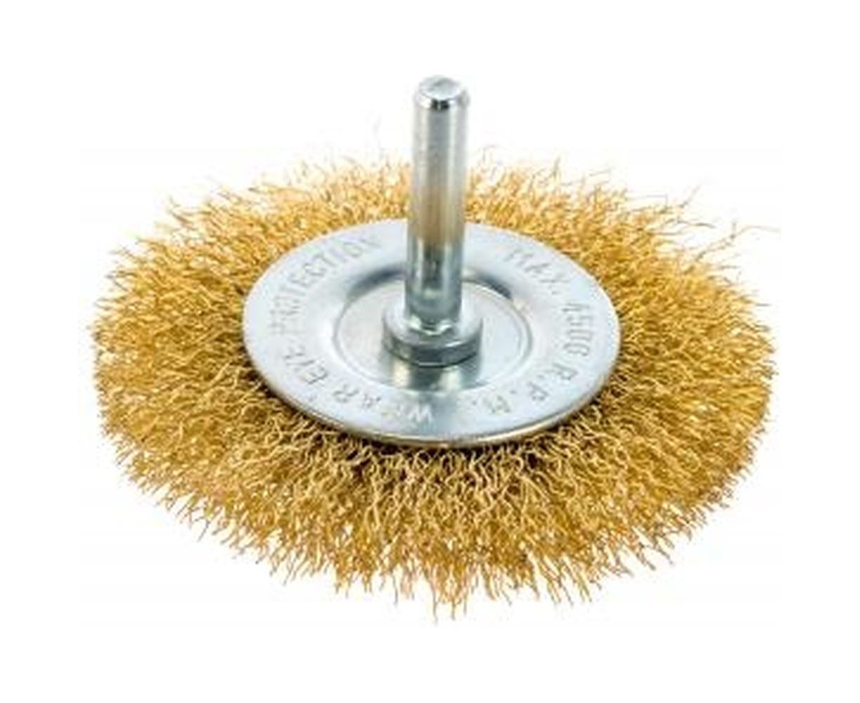 Щетка для дрели, 75 мм, плоская со шпилькой, латунированная витая проволока MATRIX 74448
