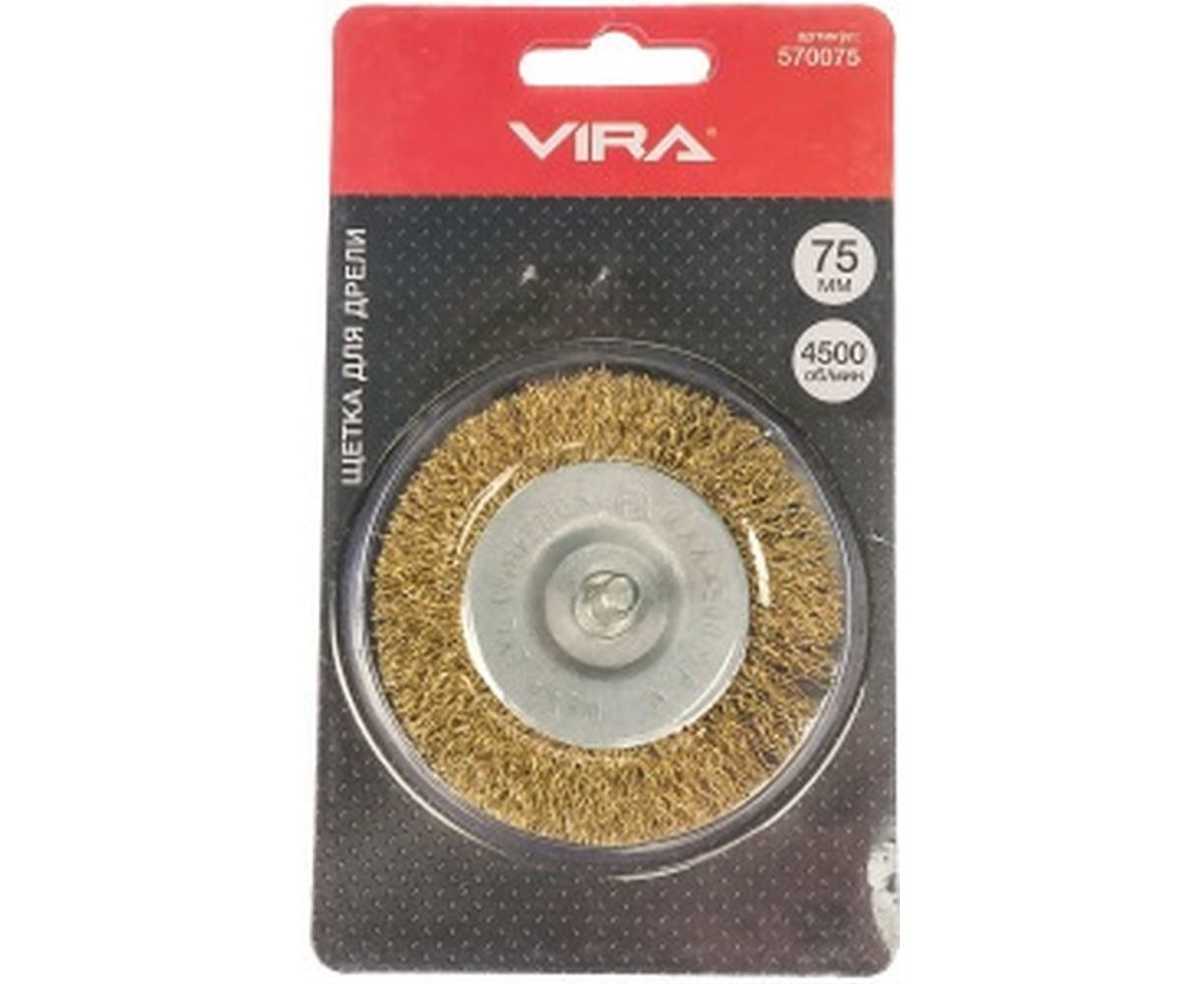 Щетка радиальная плоская, латунированная витая проволока, мягкая, 75 мм Vira для дрели 570075