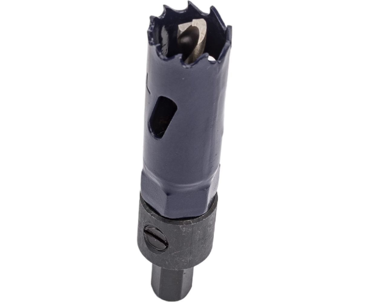 Пила кольцевая в сборе BIMETAL 19х47 мм Управдом 4100001265 выполнена из быстрорежущей стали HSS, имеет разведенные зубья. Кольцевая пила предназначена для сверления отверстий в дереве, фанере, пластике и гипсокартоне, листовой стали, цветных металлах, ДСП, ГКЛ, ГВЛ, МДФ, при установке распределительных коробок, электророзеток и т.д. Используется как насадка для дрелей в режиме сверления без удара.