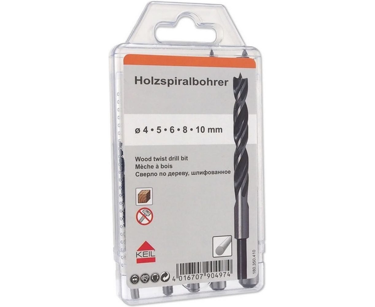 Сверла спиральные по дереву 4,0-10,0 мм, 5 шт., мягк.упак. KEIL 180350410