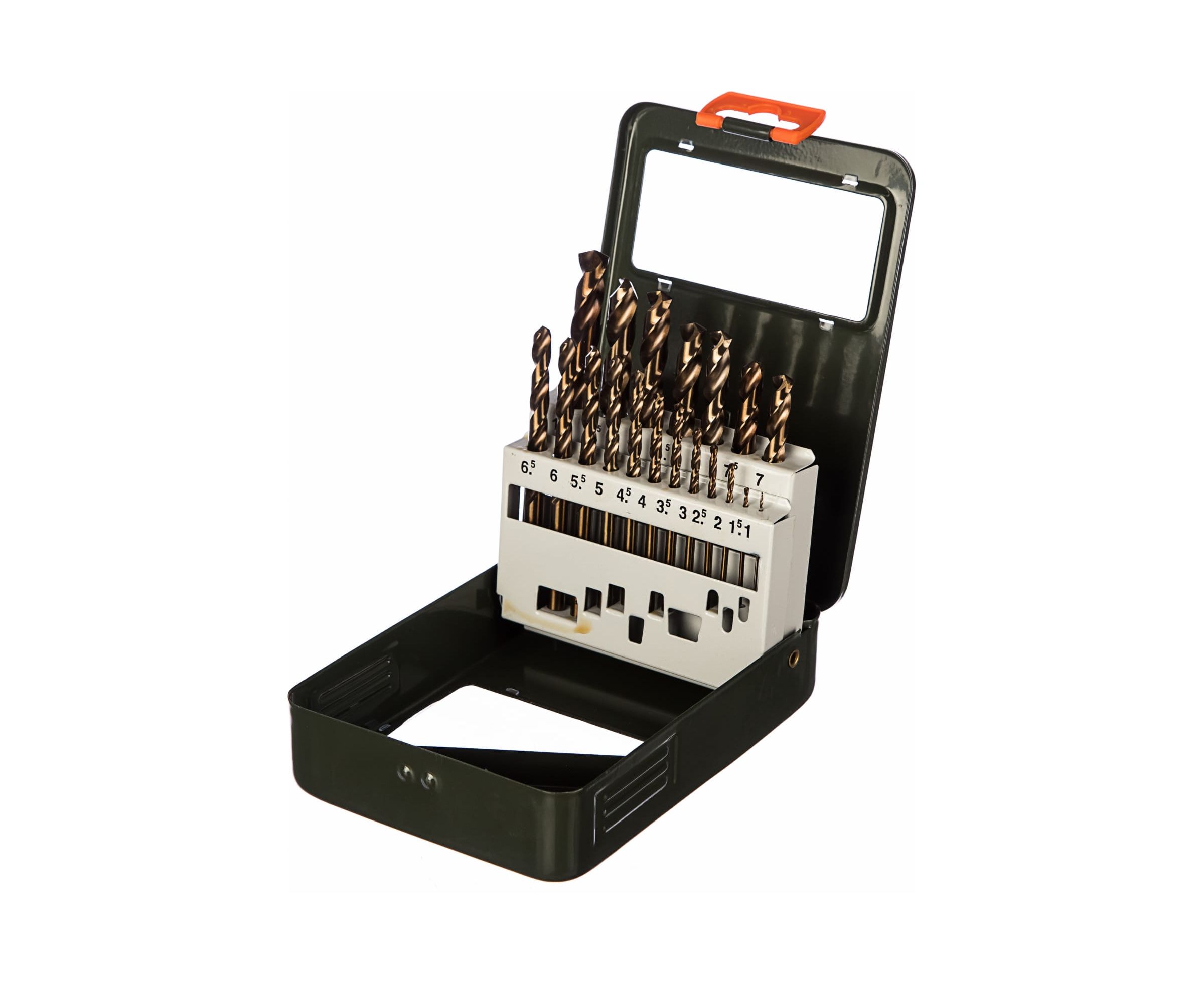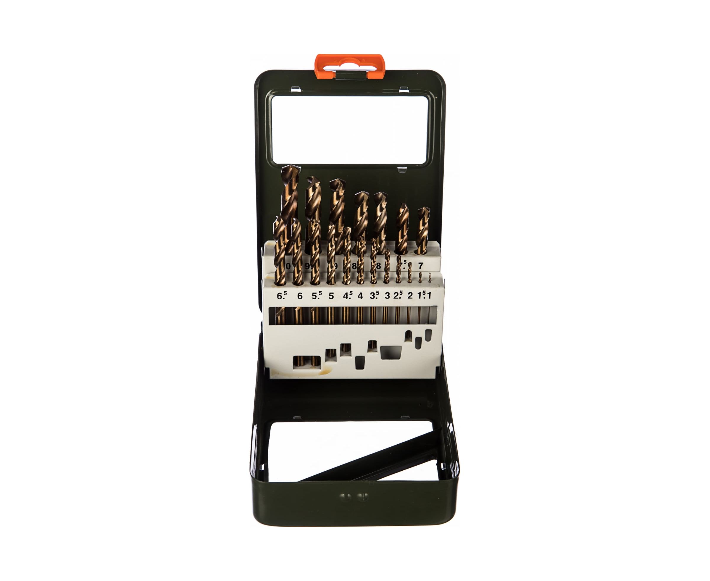 Набор свёрл Дело Техники 211519 предназначен для выполнения сквозных и глухих отверстий в легированной и нелегированной стали, сером чугуне, металлокерамическом сплаве на основе железа, ковком чугуне, цветном металле. Сверла изготовлены из быстрорежущей инструментальной стали с добавлением 8% кобальта для повышения термостойкости и износостойкости. Работают в правом направлении. Сверла поставляются в специальном боксе.