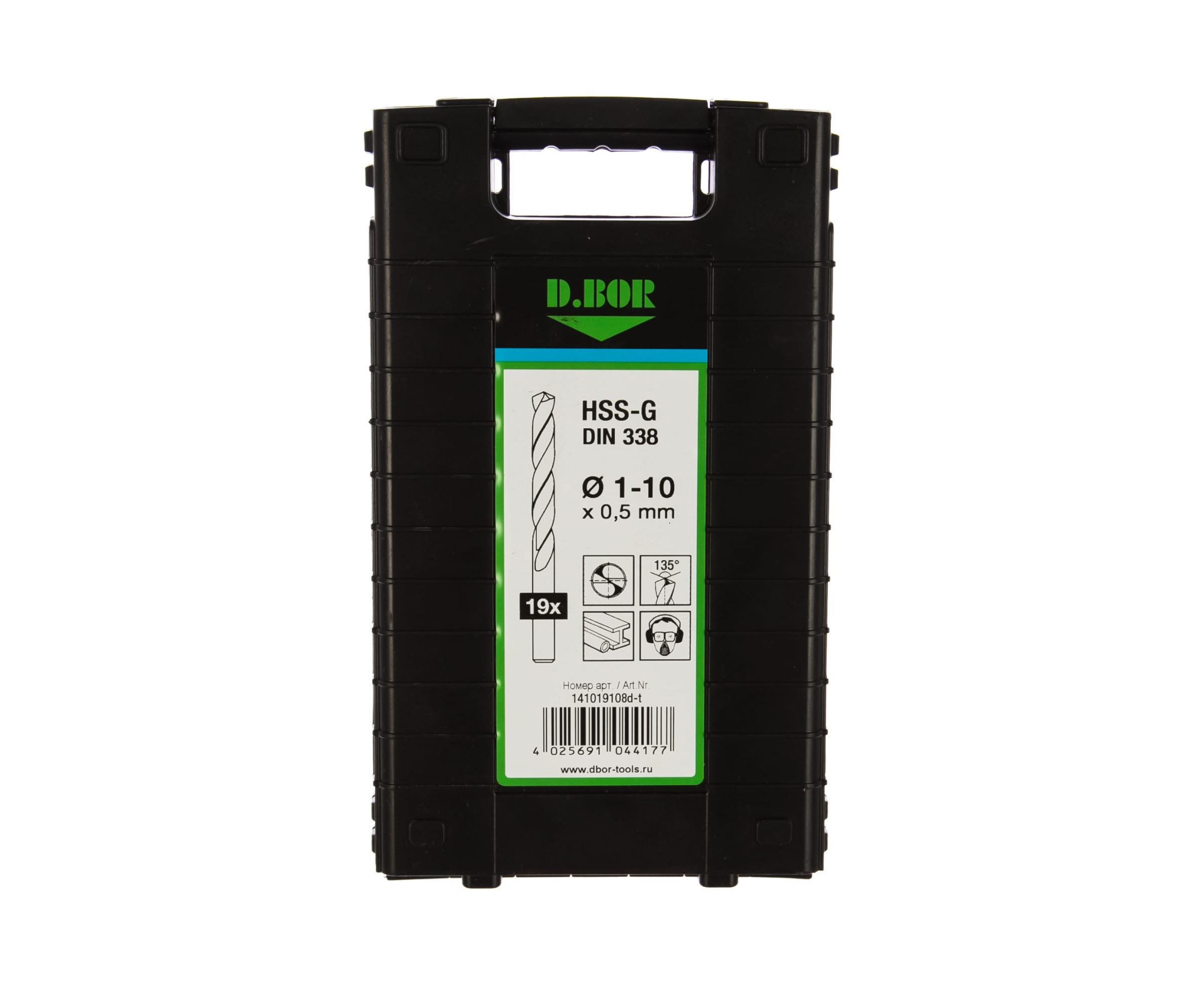 Набор сверл (19 шт., 1-10 мм, HSS-G) по металлу D.BOR 141019108D-T