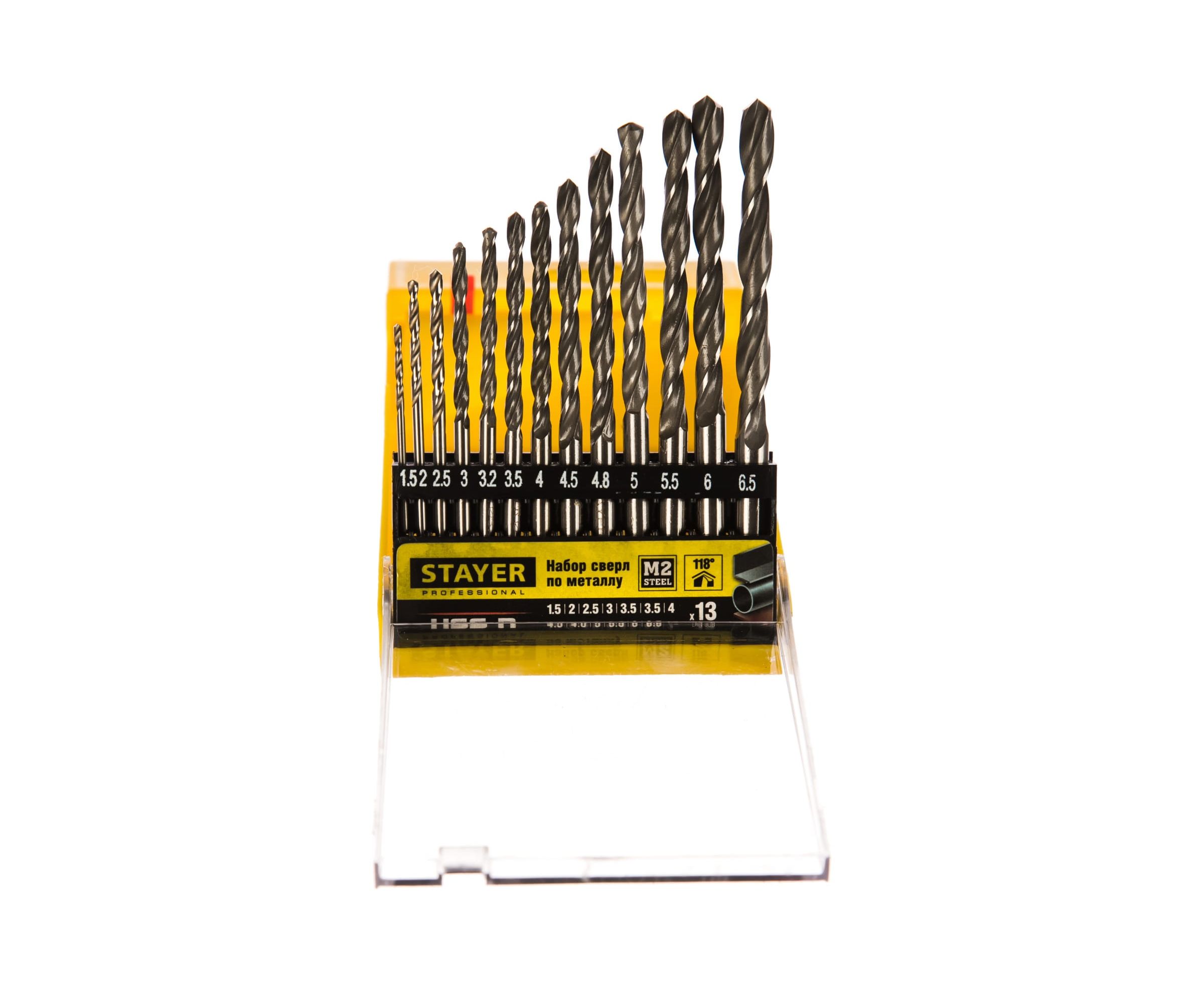 Набор сверл по металлу Professional 1,5-6,5 мм, HSS-R, сталь М2, 13 шт. Stayer 29602-H13_z01