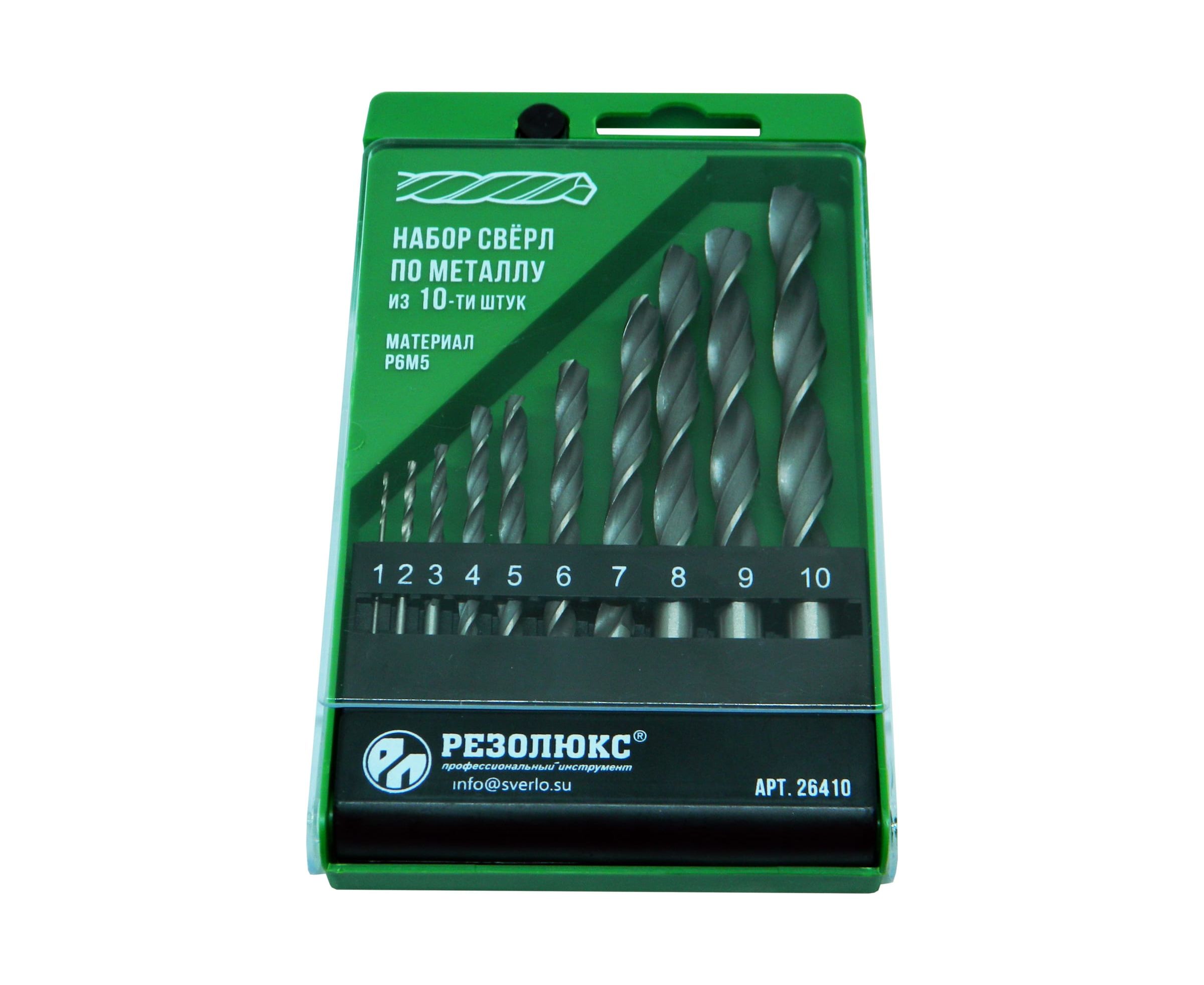 Набор сверл по металлу Р6М5 10 шт, 1-10 мм Резолюкс 26410