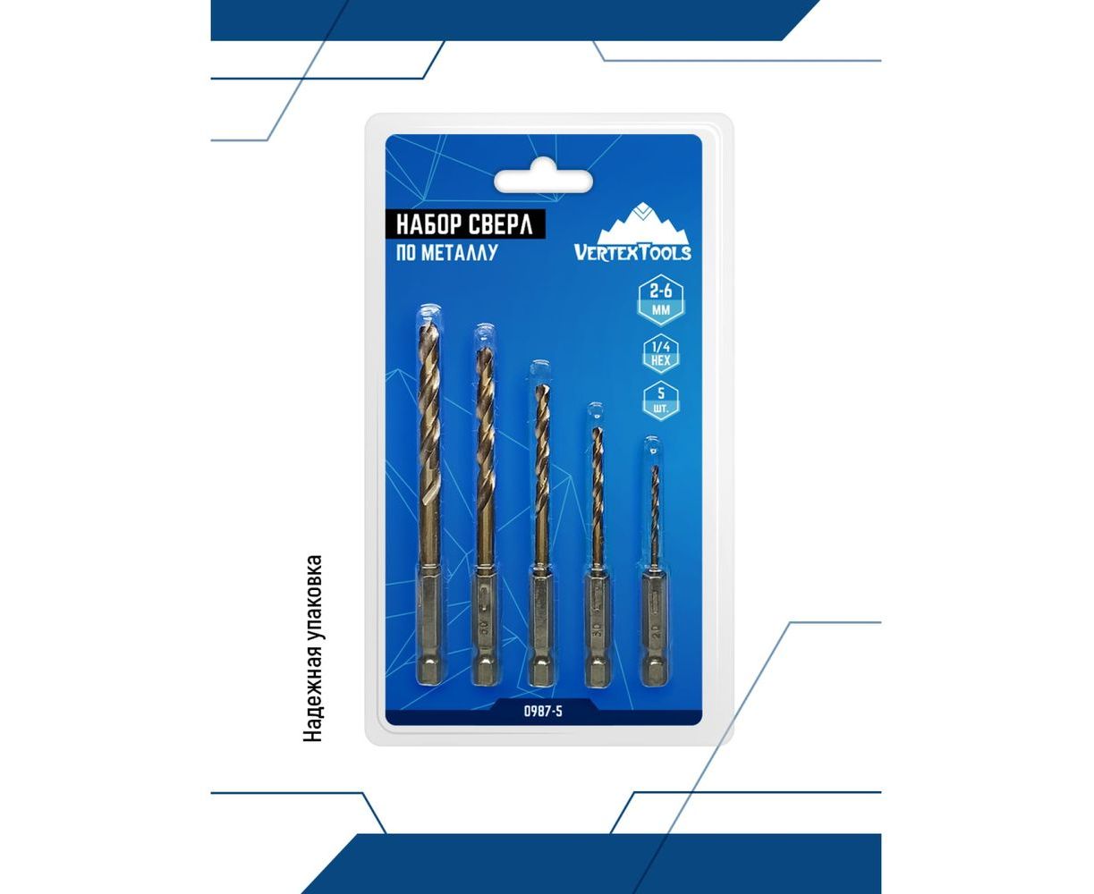 Набор сверл по металлу с шестигранным хвостовиком 5 шт, 2, 3, 4, 5, 6 мм vertextools 0987-5