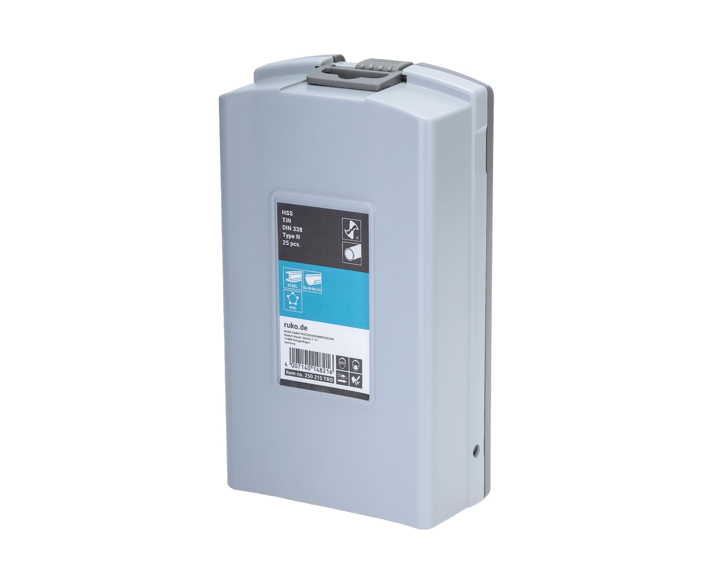 Набор сверл по металлу 25 шт, 1-13 мм, HSS-G TiN RUKO 250215TRO предназначен для получения сквозных и глухих отверстий в изделиях выполненных из легированной стали, чугуна, алюминия, меди, бронзы, цинка, с пределом прочности до 900MPa.