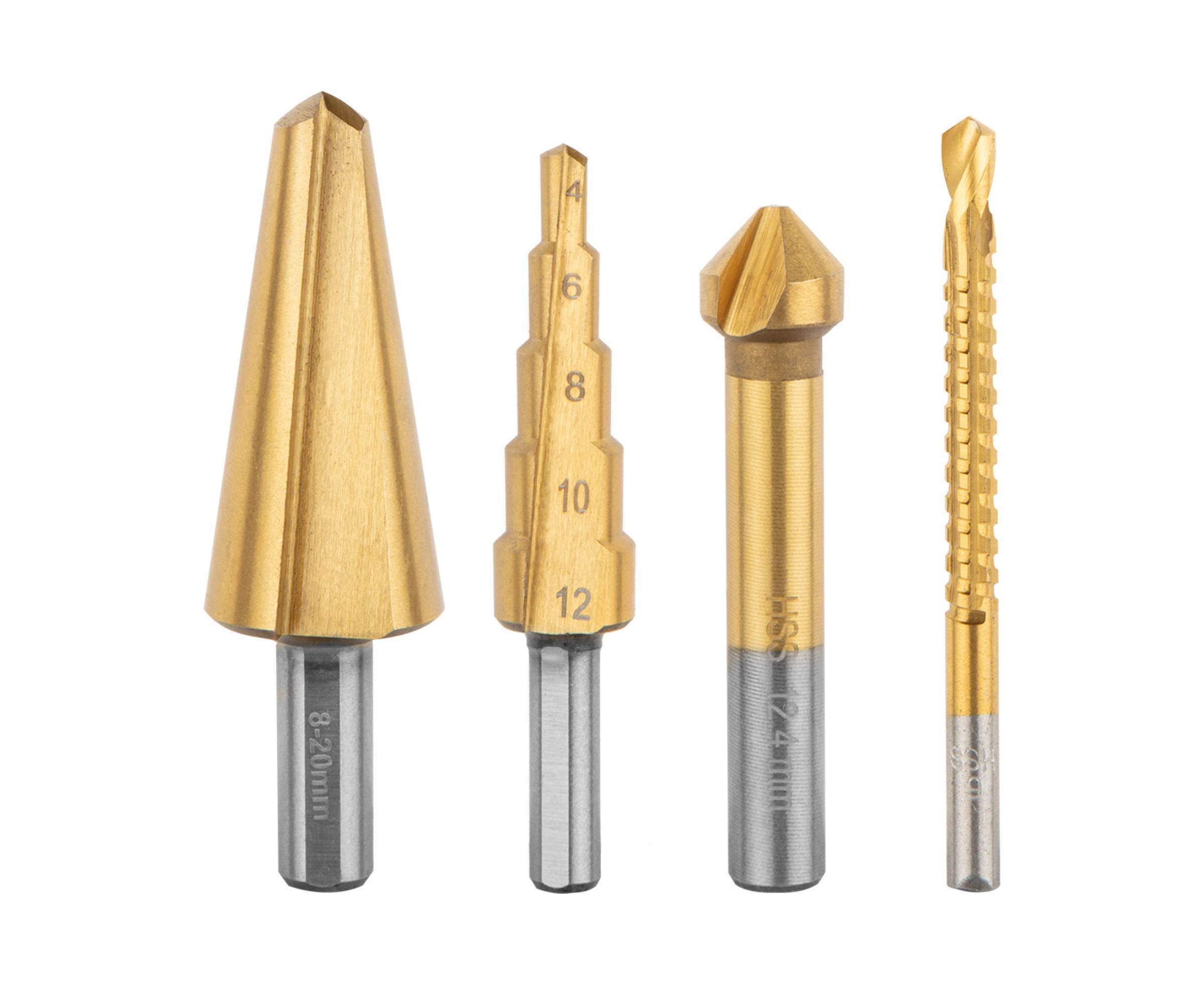 Сверла и зенковки HSS TiN, набор 4 шт VERTO 60H823