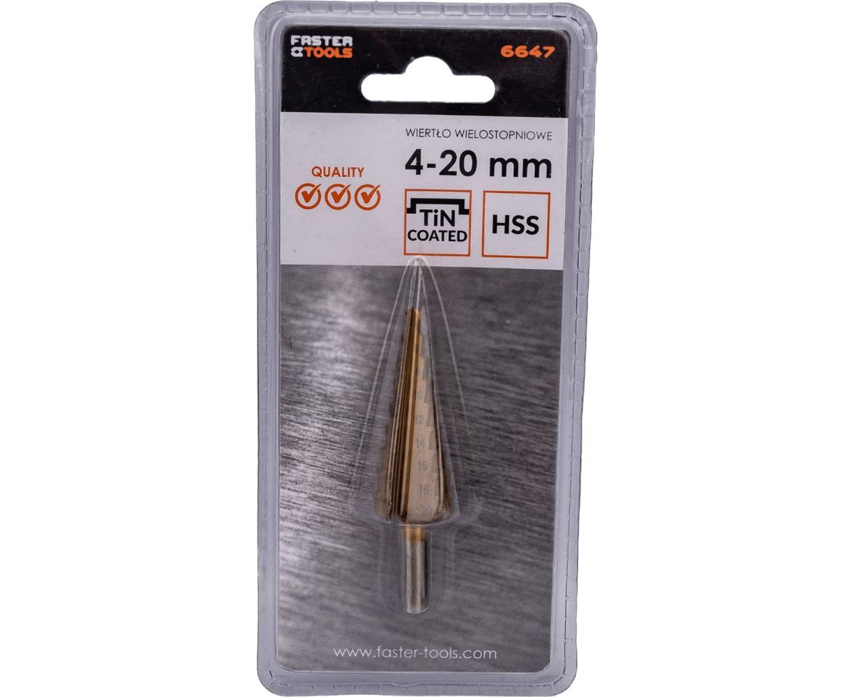 Сверло ступенчатое 4-20 мм FASTER TOOLS 6647