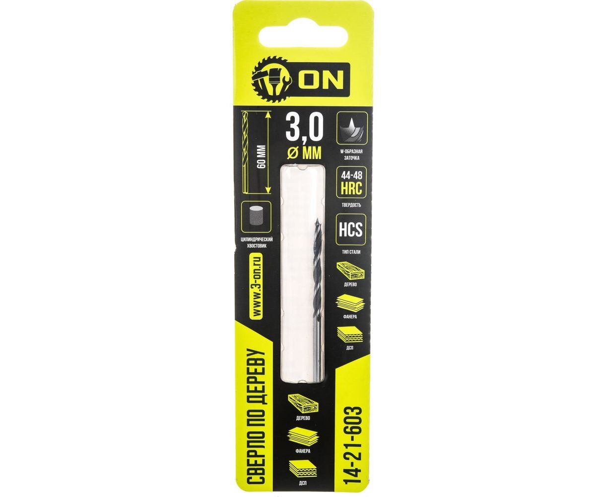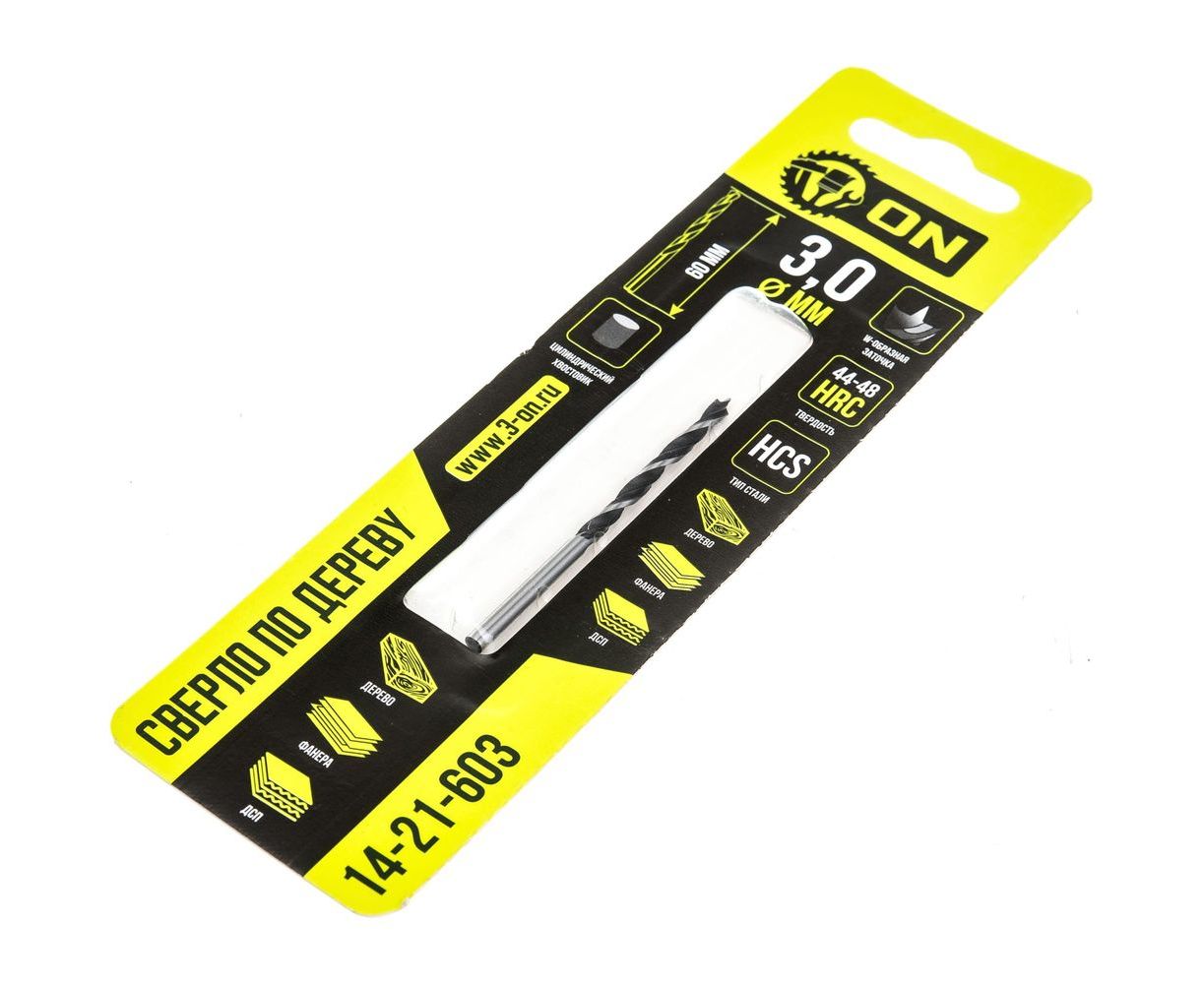Сверло по дереву 3x60 мм, цилиндрический хвостовик On 14-21-603