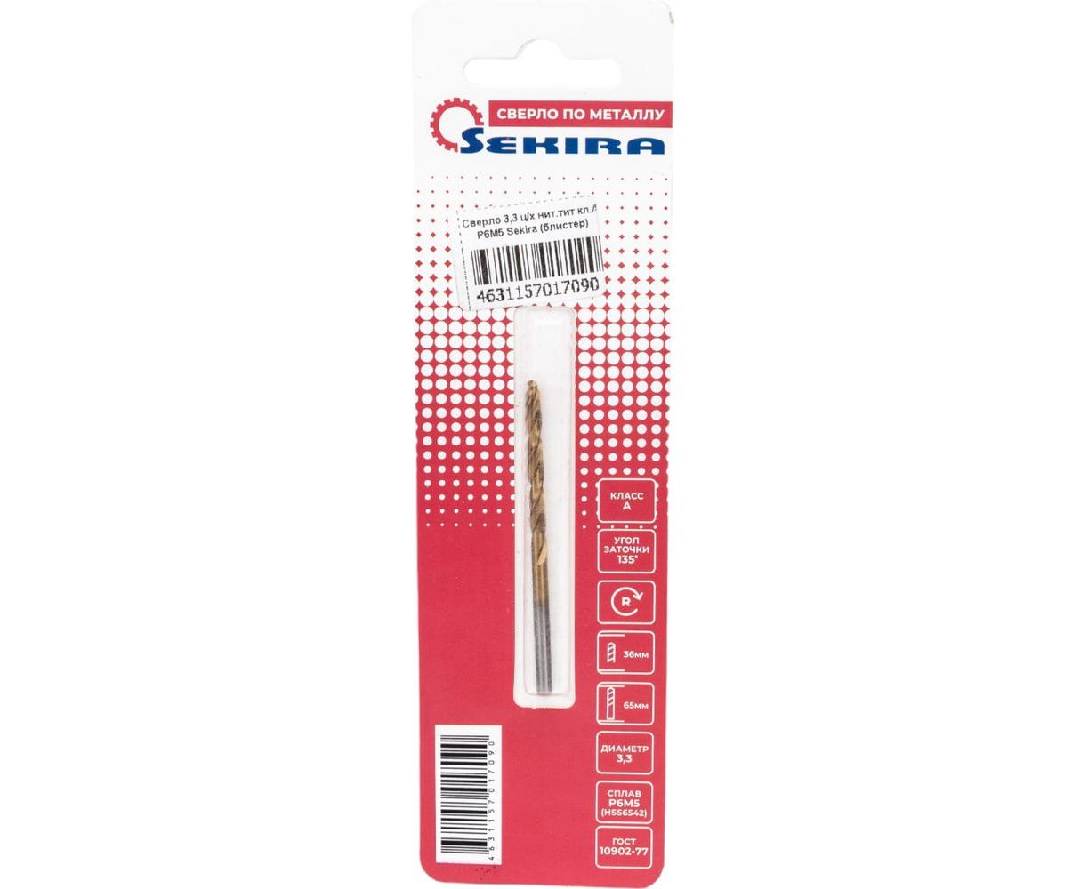 Сверло 3.3 мм, ц/х, Р6М5, класс А, нитридтитановое покрытие Sekira 00-00010427