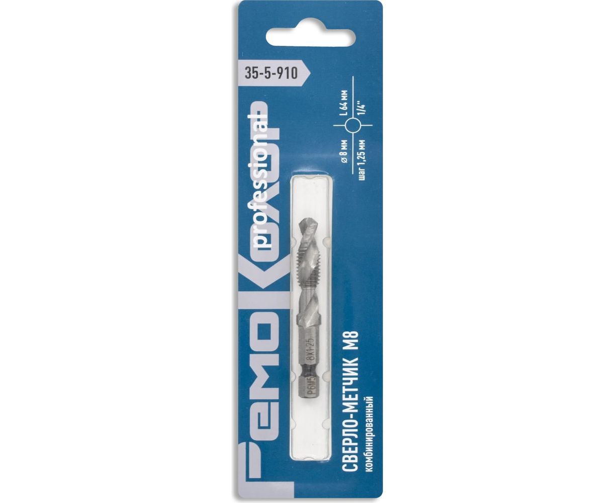 Сверло-метчик комбинированный М8, 8 мм, шаг 1.25 мм, длина 64 мм, хвостовик 1/4"", РемоКолор 35-5-910