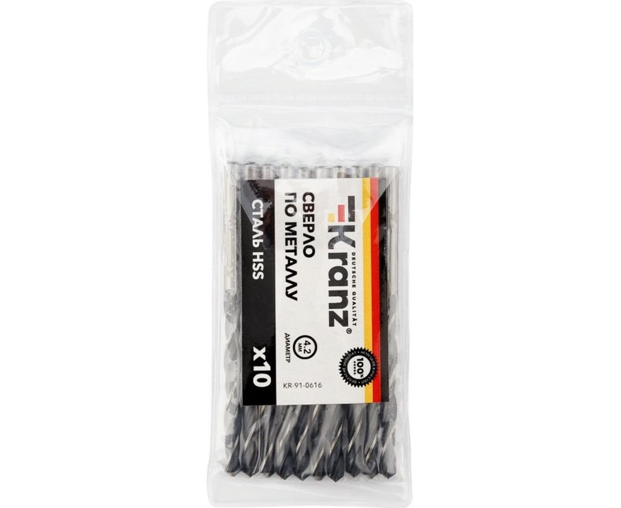 Сверло по металлу (10 шт; 4.2x75x43 мм; HSS) KRANZ KR-91-0616