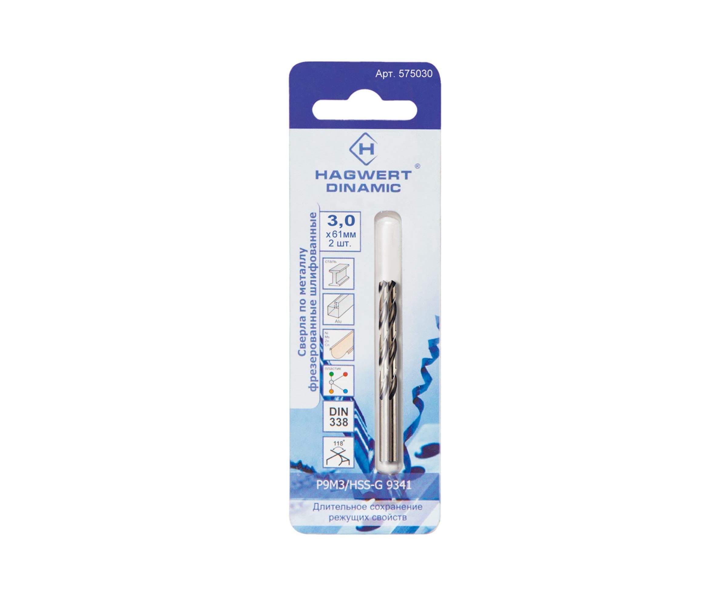 Сверло по металлу Dinamic (2 шт; 3х61 мм; Р9М3) HAGWERT 575030