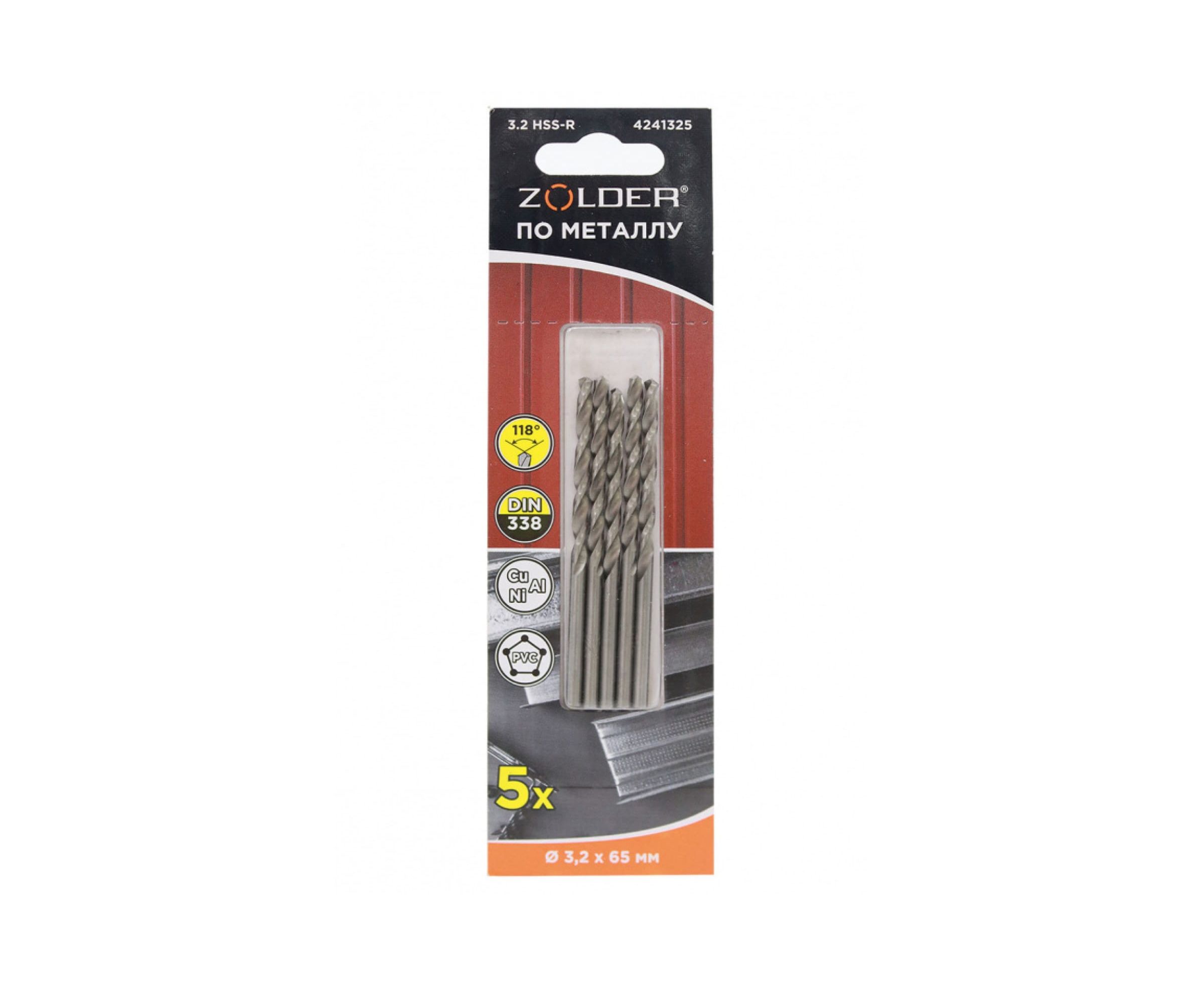 Сверло по металлу HSS-R (5 шт; 3.2х65 мм; цилиндрический хвостовик) ZOLDER 4241325