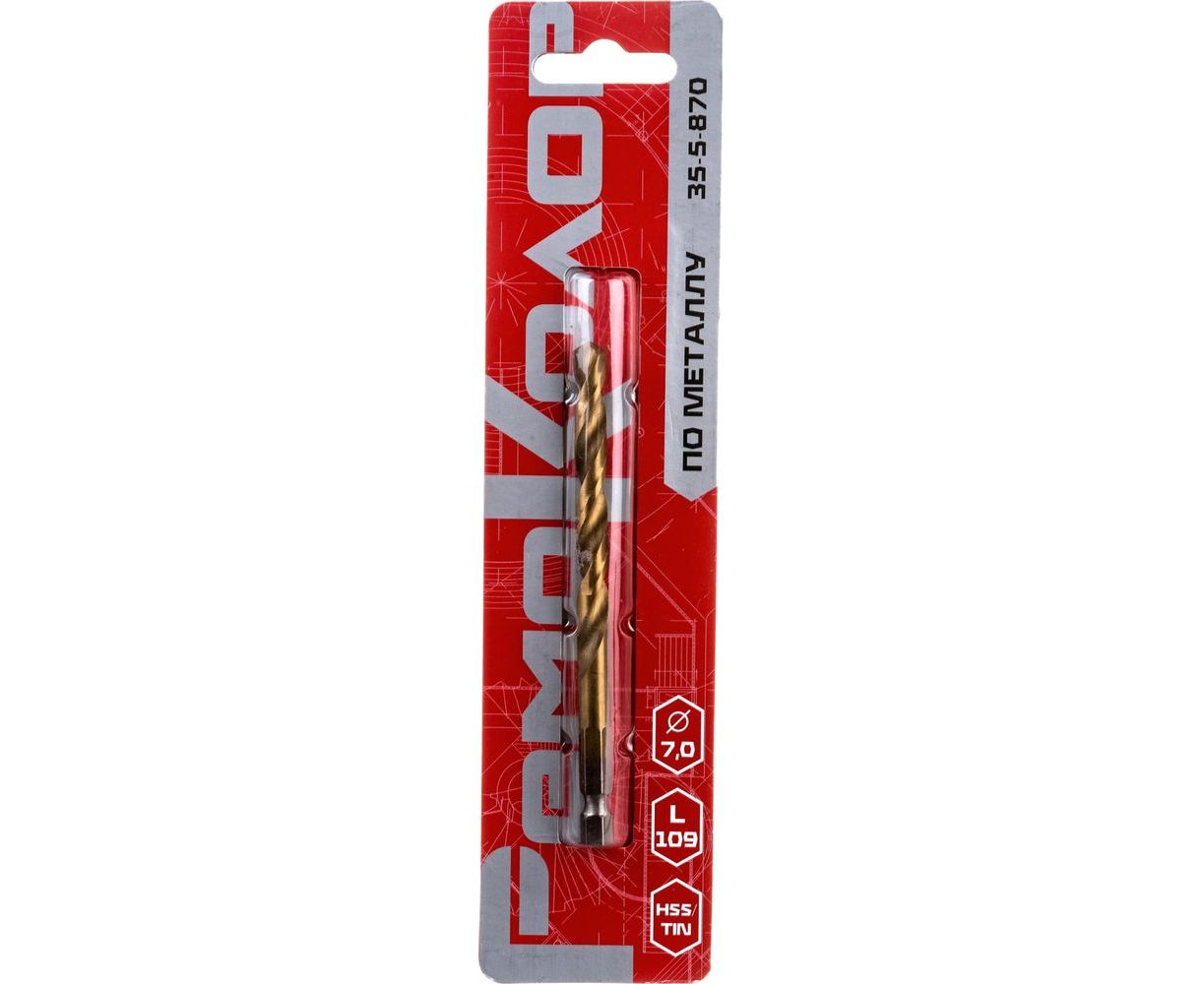 Сверло по металлу HSS TIN 7x109 мм, 6-ти гранный хвостовик РемоКолор 35-5-870
