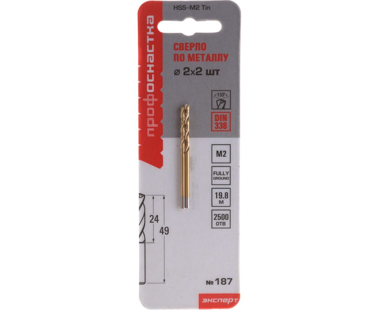 Сверло по металлу Профоснастка 2 мм HSS M2 TIN/135 DIN 338, 2 шт., №187 30201027