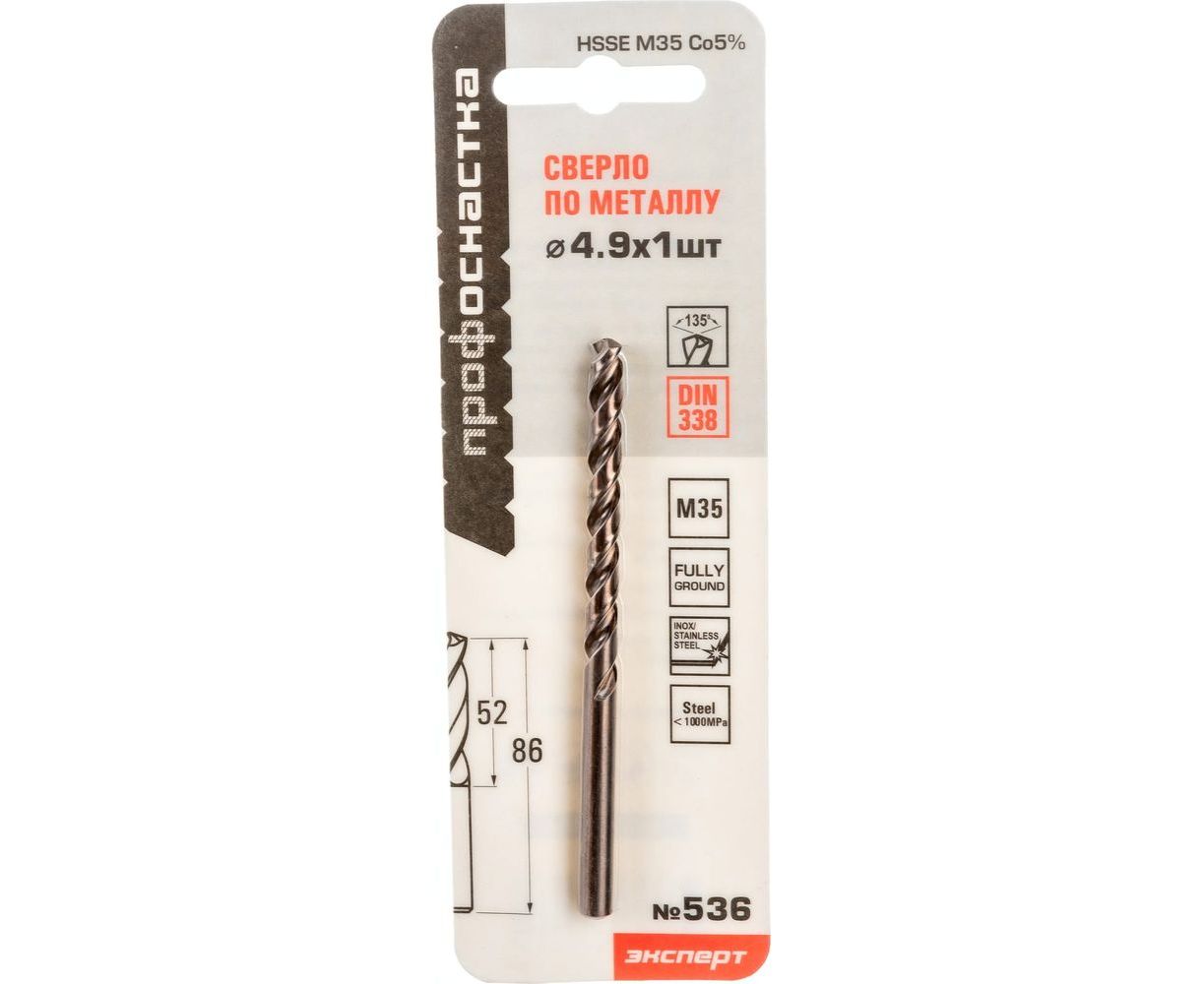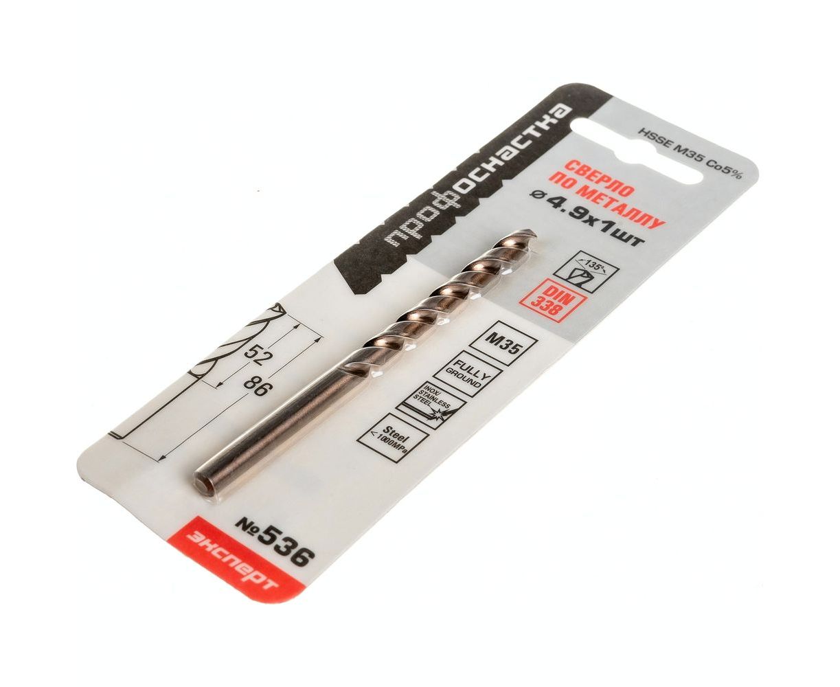 Сверло по металлу Профоснастка 4,9 мм HSSE M35 Co5%/135 DIN 338, 1 шт., №536, 30203056