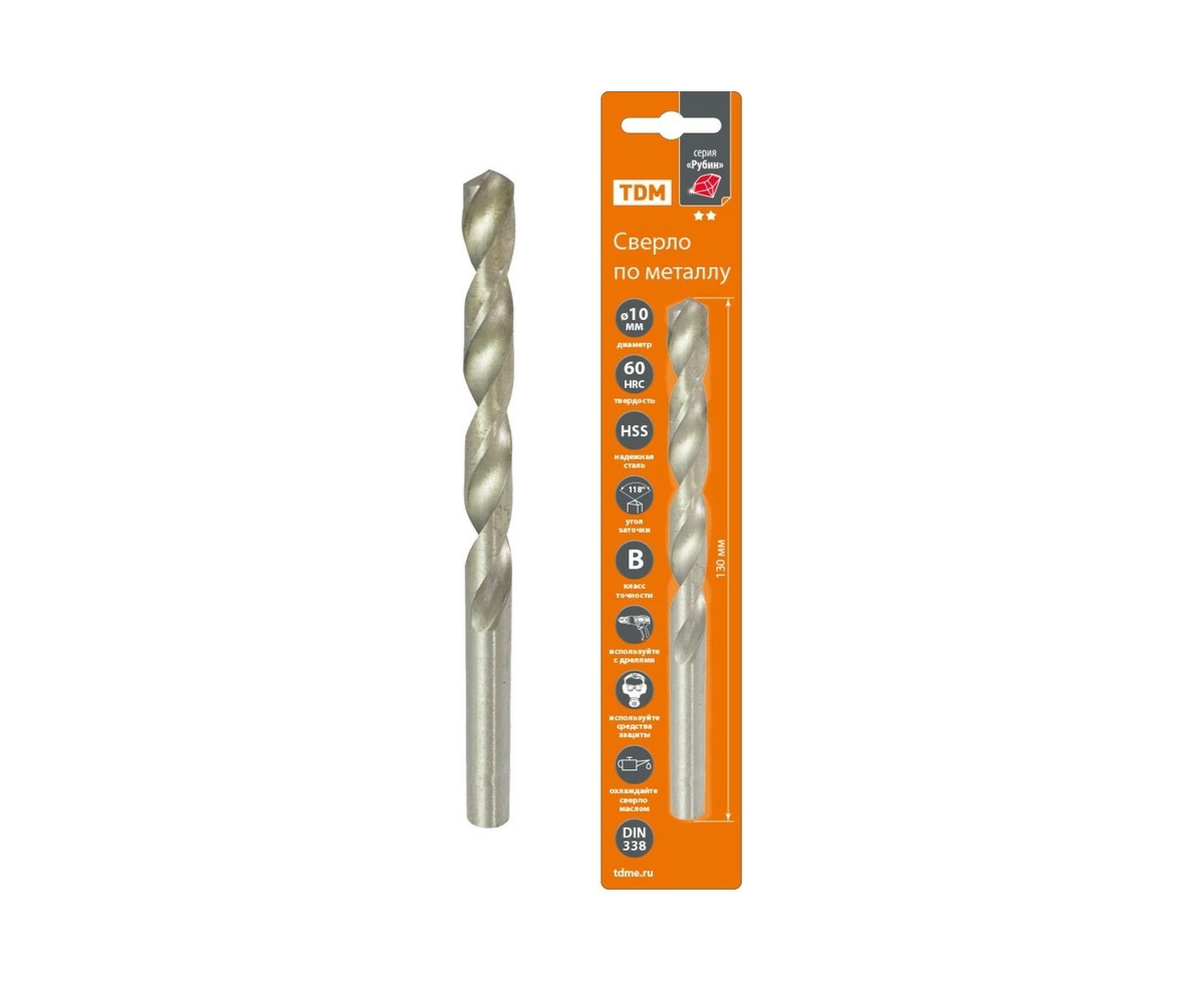 Сверло по металлу Рубин (10х130 мм; HSS; класс В, ц/х) TDM SQ1090-0109